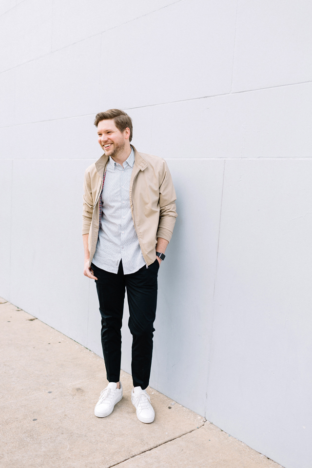 So I had this vision to have monthly family-style posts and ya’ll this vision came true last week. (Thanks to Cassie Loree Photography!) I knew I wanted to do rompers with Gemma and I but Bryan drew the line at a man romper. Actually, he drew the line after Christmas pajamas. Fair enough. We all have our personal boundaries and apparently his is a man romper. Good for him. But he said he agreed to a print, like this Ted Baker button up top he’s wearing. Almost a polka dot, too! (for the record he is pro-polka dot) He picked up this jacket from Nordstrom and it’s on sale! It’s such a nice staple for spring.