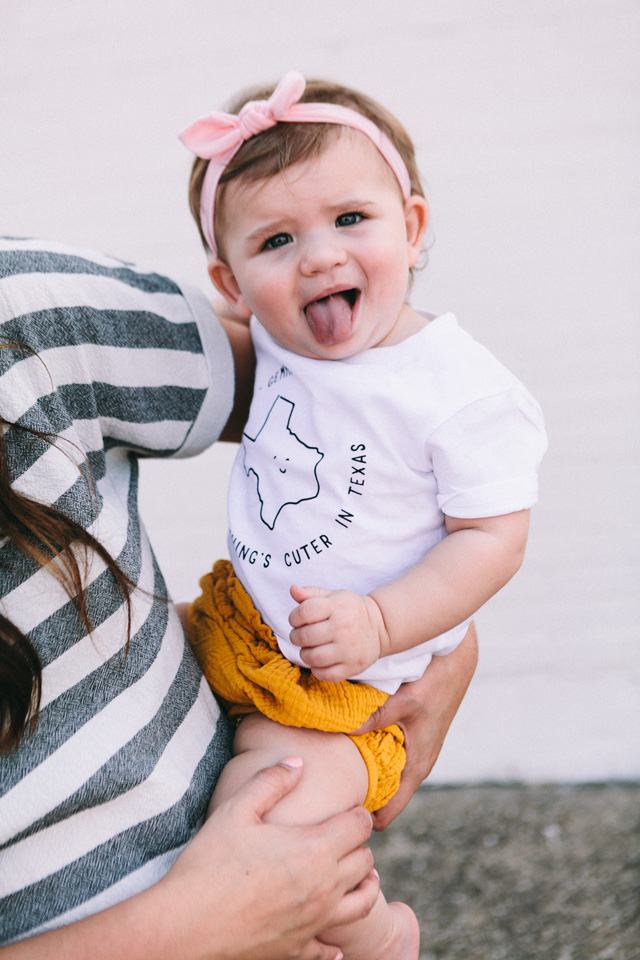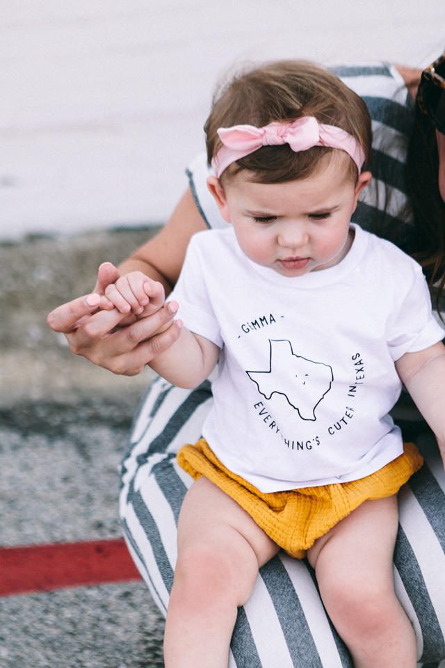 I am so excited to announce a project we’ve been working on all summer long with one of my favorite baby + toddler t-shirt brands — Cheerily! The lovely ladies from Cheerily approached me this spring with an offer I could not refuse: design two customizable Texas tees for your little ones! As a mom, I am always on the hunt for cute tees that aren’t super cheesy. And as a native Texan, I’m very attuned to all of the Texas sayings we have in this state. In fact, we may have too many but that’s for another day and another discussion. We decided to go with my two favorite Texas sayings — a twist on ‘Everything’s Bigger in Texas’ and of course the classic ‘Deep in the Heart of Texas.‘ I’ll let you see how we gave each saying a cute twist for your littlest ones!