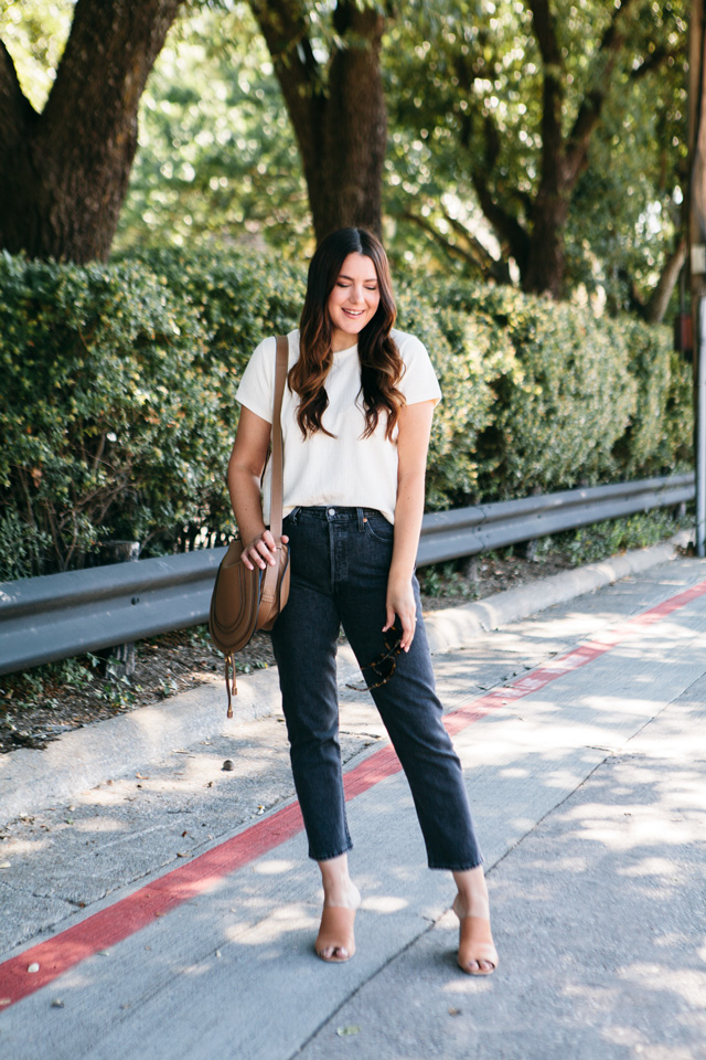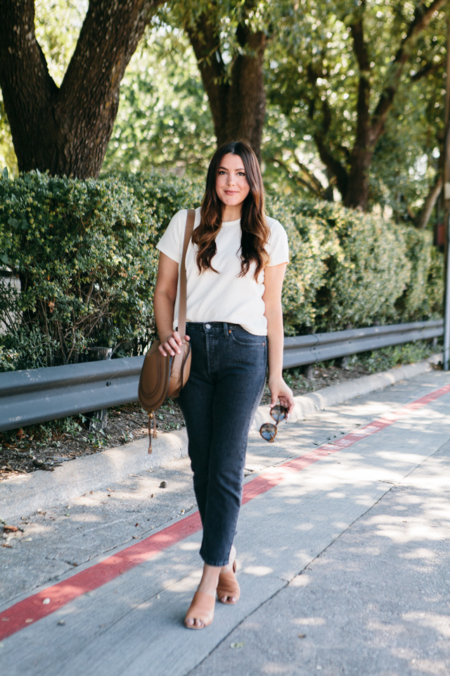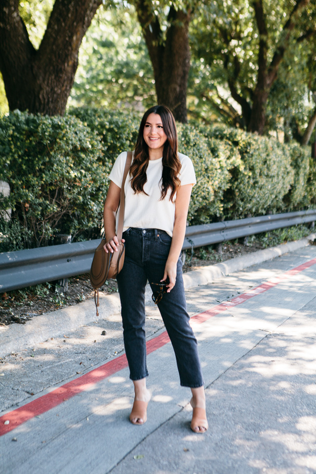 I’m going to do a post at the end of this week about the best re-stocks and all of the in-stock items left from the Nordstrom Anniversary Sale before it ends this weekend BUT I had to get a post up today about these jeans! I don’t even know what I was thinking not picking these up, to begin with. I told you last week how I was lusting over this Levi 501 fit when I was pregnant and obviously couldn’t wear it then. But now, a full year later and not pregnant 😉 my dream to wear Levi’s 501s have materialized. I bought the denim stretch ones from Shopbop (seen in this post here) and I picked these up when I realized they are the same fit but in a lovely shade of black. And not the kind of black denim that you get frustrated with after a few washes, nope this is a heathered black denim so it’s got a bit of a fade to it, which lends to it’s casual, cool feel.