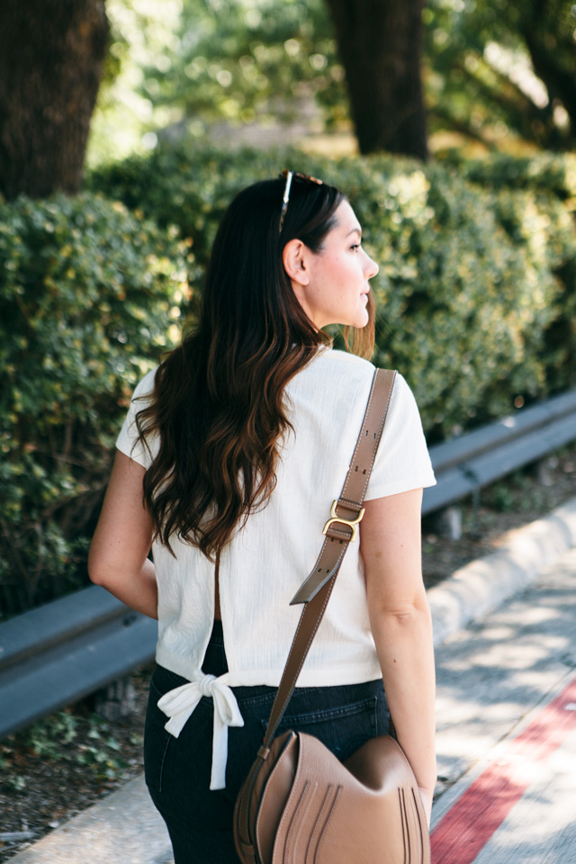 I also think that this Topshop top would look perfect with these jeans as well and gives a similar vibe as this top I’m wearing. Since my top has some fancy business in the back with a tie, this Topshop top has a fancy business in the front with buttons. It seems like an honest trade.