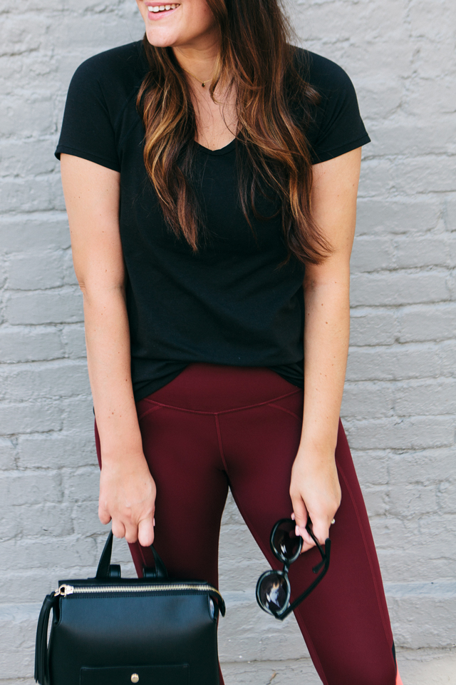 I picked up a couple of new yoga leggings from the sale. I got these maroon and color-blocked ones that I’m wearing here, these grey cutout leggings and just a regular pair of black yoga cropped leggings. You can never have too many basic pairs. This is the time to stock up if you are looking for workout wear! You seriously can not beat the quality of Zella at this price! I also picked up this pair of pink Nike shorts because it’s currently 1000 degrees outside. Remind me that I was asking for this back in February. Find all of the activewear leggings here!