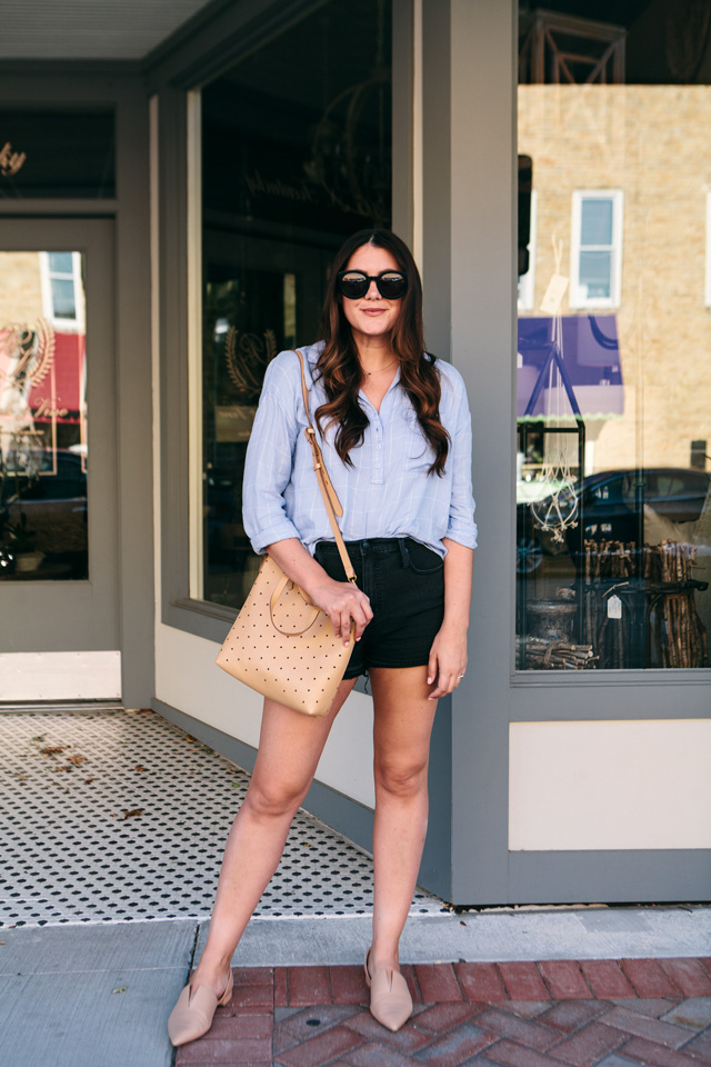 If you’re into loose, casual tops under $35 then this top has your name written all over it. (Not really though, it has a light grid print all over it.) Of course it’s just on sale through Sunday, then it will go back up to $50! So if you’re thinking, ya I could use a cool and casual top then act now. I am wearing a medium and as you can see it’s plenty big! The reviews are mixed on size down or stay true to size, so I say if you’re petite, size down. If you’re taller, stay true to size for the length but it will be slouchy! I’m in my ‘true’ size and this is how it fits. Just the right amount of slouch.