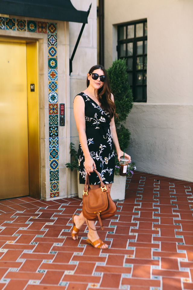 Did you even see this pattern coming? Did this blow your mind? Honestly, mine was. I was not convinced that either side would look right in this fashion but you guys, it must be magic because both styles work effortlessly and it’s amazing. I can confirm that reversing this dress is as easy as putting a shirt on backward and leaving it all day long because everyone in your circle is too nice to tell you. At first, I thought for sure I’d prefer the all black side, but the pattern side sold me as I wore it a bit more casually. If you travel for work this dress should be number one in your carry-on. Toss on a classic blazer (or I love it in this mauve color with the black side of the dress!) or sleeveless trench vest over it and this look spells CEO — Chic Executive Officer. (I can see your eye roll from all the way over here but I couldn’t help myself. I have more puns but I’ll only serve up one today. It is just a Monday after all, I’ll let you ease into the week.)