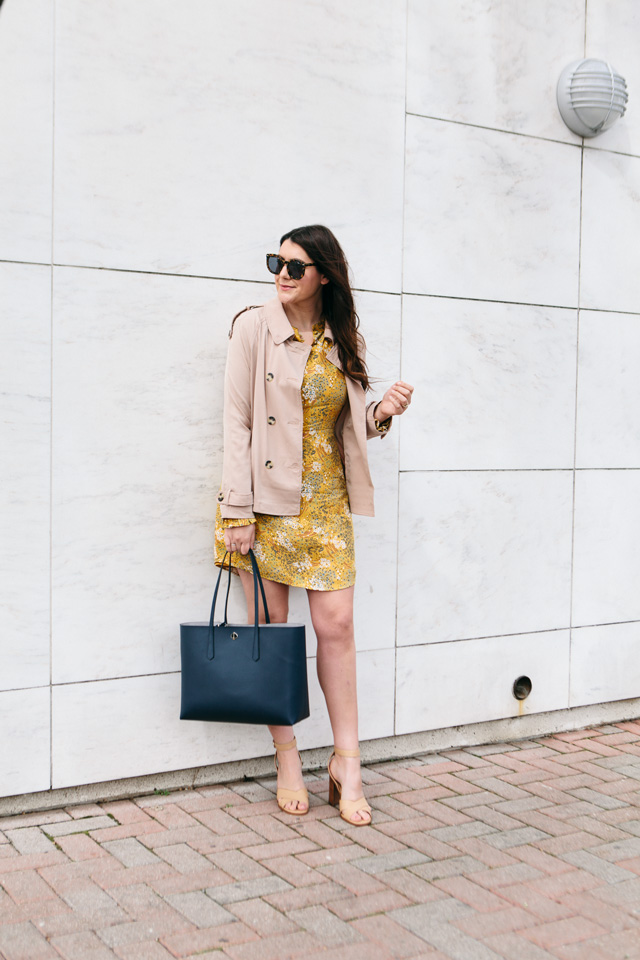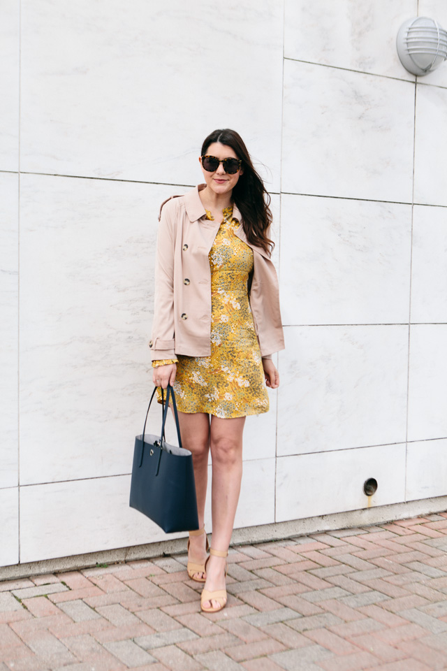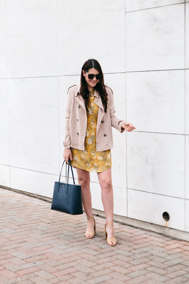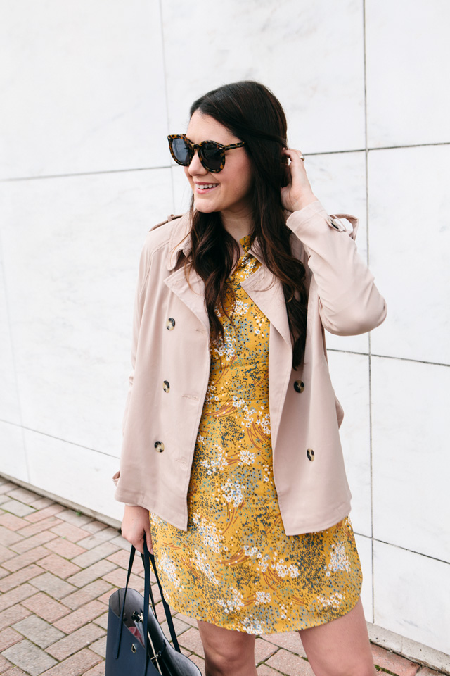 For one day only, spring decided to show up! It’s warm out, it’s windy, it’s sunny. It’s all the things spring should be. I immediately reached for this sunny, happy dress that I’ve been dying to wear! (It’s 40% off right now!) I also got to slip into my new heels for spring. I’ve had these for a few weeks too, just anticipating better weather. I’m so glad I bought these heels ahead of spring and that I remembered I had them (lol, just kidding. They’ve not been placed in the black hole that is my closet right now.) I am trying to be ahead of the game on my shoes this year, instead of waiting until they all sell out. AKA what I typically do every single year. Oh! I also tossed on my favorite swingy trench from the shop! (We sold out and restocked and there are just a few left! You can find it here!)