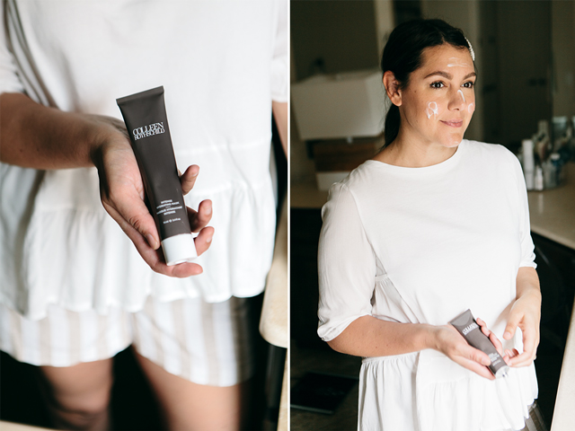 Summer is the time that my beauty routine changes the most. I tend to go with a lighter foundation or just a tinted moisturizer, a little bit of bronzer/blush, and just a swipe of eyeliner and mascara. (My brows still take a solid 10 though. Priorities.) It’s not that my work schedule has changed or really anything about my day-to-day, but there is just a summertime vibe that I like to match with my wardrobe and my beauty routine. Easy does it in the summer is my beauty motto. But in order to have a go with the flow glow with my makeup routine, my skin has to be clear, clean and hydrated. I wanted to show you how I use 4 specific products from Colleen Rothschild to get my skin that just right glow for summer.
