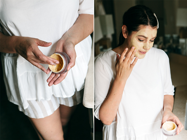 About 2-3 times a week, depending on when I have time, I try to use an exfoliating mask. I’ve recently started using the Tumeric & Neem Oil Brightening Mask and I love it. My skin is instantly softer, brighter and the texture of my skin feels less uneven. This mask you leave on for 10-15 minutes and rinse right off, no harsh scrubbing. If you prefer a chemical exfoliate, I’ve also been trading the Tumeric mask with the Pomegranate & AHA Resurfacing Mask. I love this one as well! It has a bit of a different effect than the Tumeric & Neen Oil Mask, which I think is a gentler exfoliant. The Pomegranate & AHA Mask gives you a little tingle and you can leave it on for just 5 minutes, so it’s nice to use if you’re in a pinch. I find that this one makes my skin a bit smoother and calmer. Both are wonderful masks, you can’t go wrong with either!