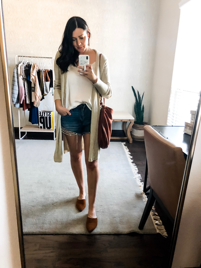 Leith Longline Cardigan / BP. Camisole / Similar Shorts / Madewell Remi Flats