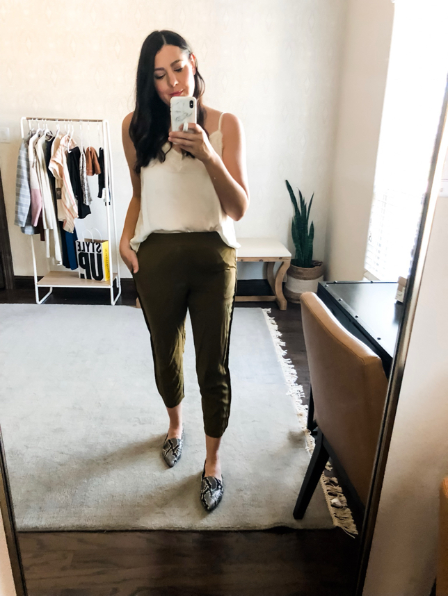 Madewell Trousers / BP Camisole / Marc Fisher Snakeskin Flats