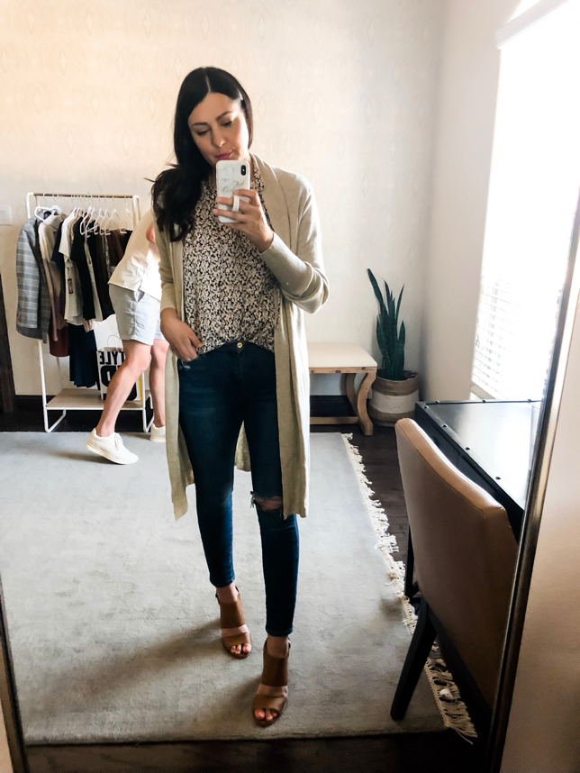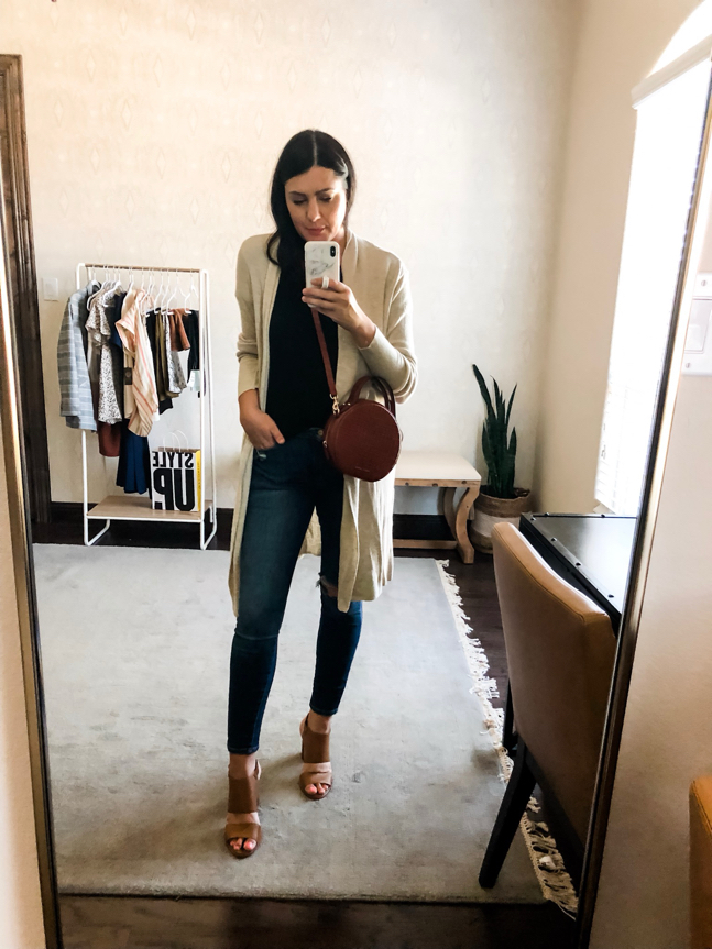 I’m actually surprised this cardigan isn’t sold out to be completely honest. It’s lightweight, it’s a really nice length and it comes in a few colors that would all be great for fall! I am in the medium and it fits true to size, but I would suggest sizing down if you are petite or your top runs smaller. I love the oatmeal color as it will go with everything from now until next spring, it’s a nice light color and it feels different than my typical go to which is a camel or tan cardigan. (For length reference, I am 5’9″)