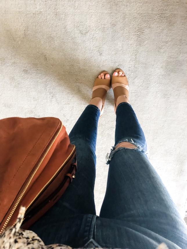 I was SO surprised by these. I saw them in store and picked them up to try and ya’ll — they are beautiful. They look so much more expensive than they are ($65). They are a soft leather that keeps its shape but hasn’t once rubbed at all. They are comfortable to wear and they are that magical tan color that goes with everything. I am in the 10, fit is true to size!