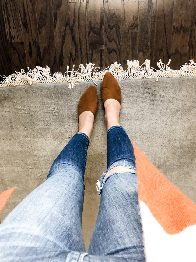 Okay if I had to tell you to buy two pairs of shoes (besides those Vince Mules) it would be these Madewell flats. I love this pair of flats so much, I’ve worn them all week. They are just an easy slide on for now through fall. I will say that I’m glad they are on sale because I wouldn’t recommend buying them at the full $90 price but for under $60 I think they are a great buy for a suede flat. I am in the 10. True to size, but pretty fitted. Size up a half size if you’re in between.