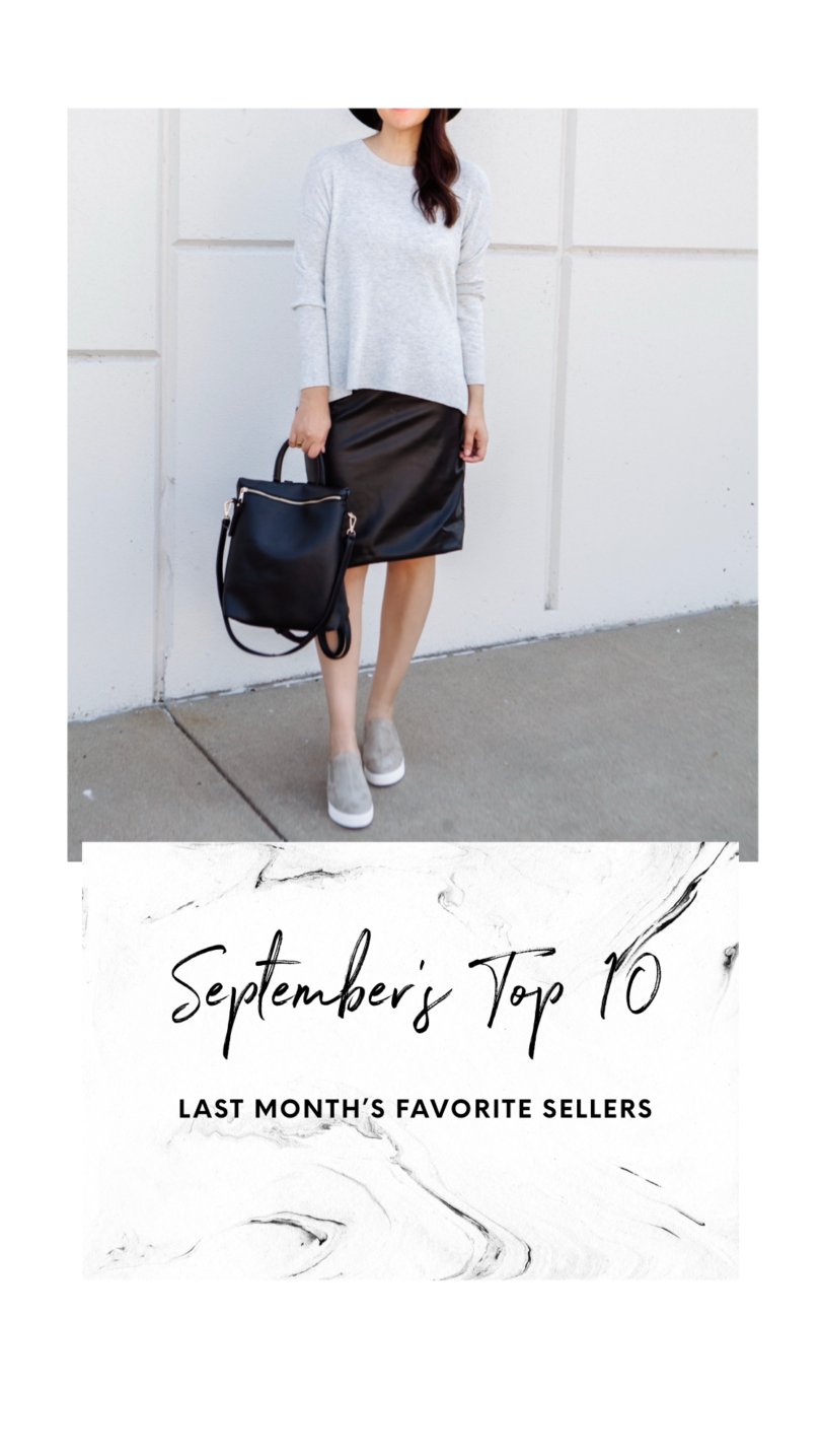 I’ve had a few request to do a round up of my reader’s favorite pieces from last month and I am happy to oblige! I was actually a bit surprised at what I saw — well some things didn’t surprise me because I like them too. Like these backless sneakers — you guys loved them! Well me too. They are my cool mom sneaker, if I must assign nicknames to my things. This faux leather backpack was a popular favorite as was both of these sweaters — the brown sweater here and this mock neck sweater here! (This grey one gets honorary mention for coming in at #11)