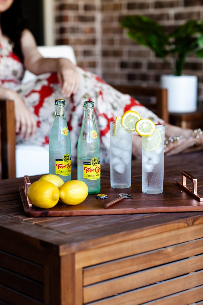 Pour your Topo Chico (the best — if you know, you know!) over ice, add your clear liquor of choice, a squeeze of lime or lemon juice and shake it! Pour into your favorite glass and watch the grass grow.