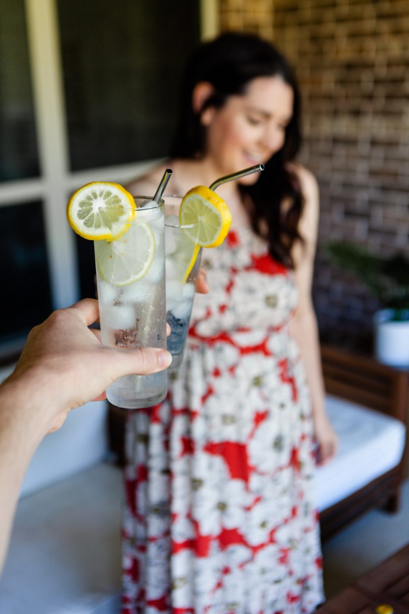 So I hesitate to share simple recipes like a cocktail because I figure by now we are all about the same age and you know about the same things as me. So this might be a no-brainer for you guys but I thought I’d share one of our favorite cocktails for summer especially: Well Water. Sounds appetizing, no? But it’s super simple, easy on the calories, refreshing and easy to customize.