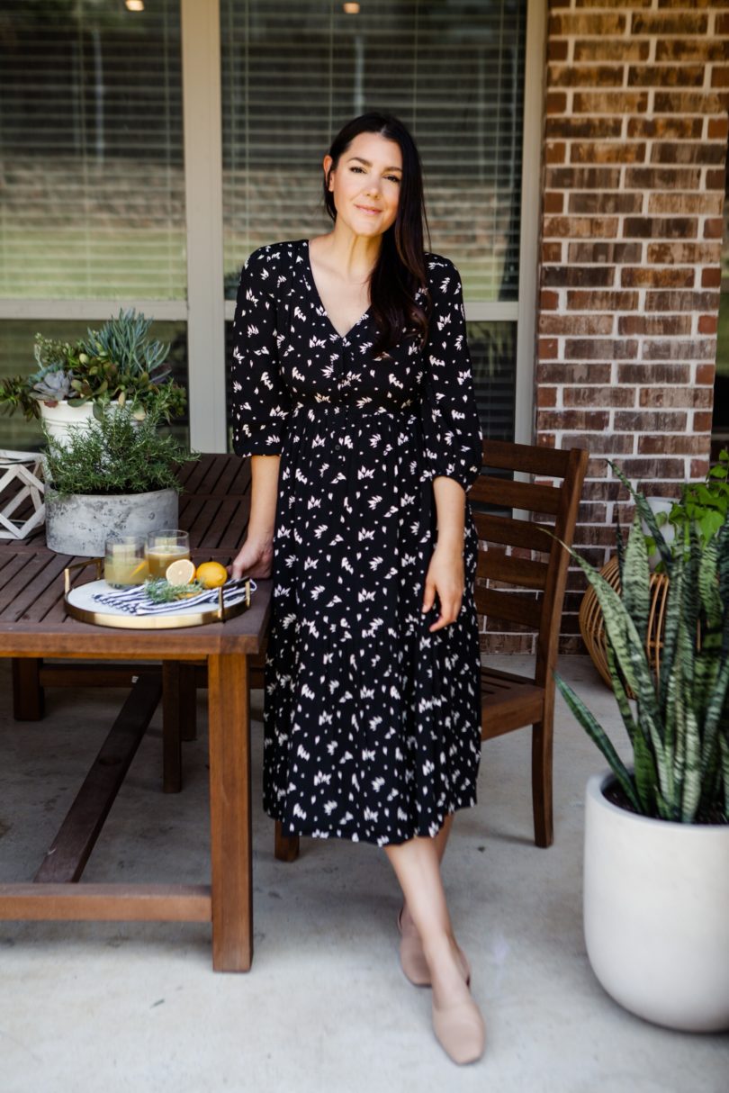 It’s Friday and you know what that means — it’s drinks and a dress time! This week’s dress is from the Nordstrom Anniversary Sale because, well of course it is. I had envisioned this number with my Veja sneakers but…and I hate to admit this…I couldn’t find them. This is a recurring nightmare that I have that ends becoming real life multiple times a week. So I chose these nude flats instead and can I just say they are a perfect fit with this dress. You can find my flats here!
