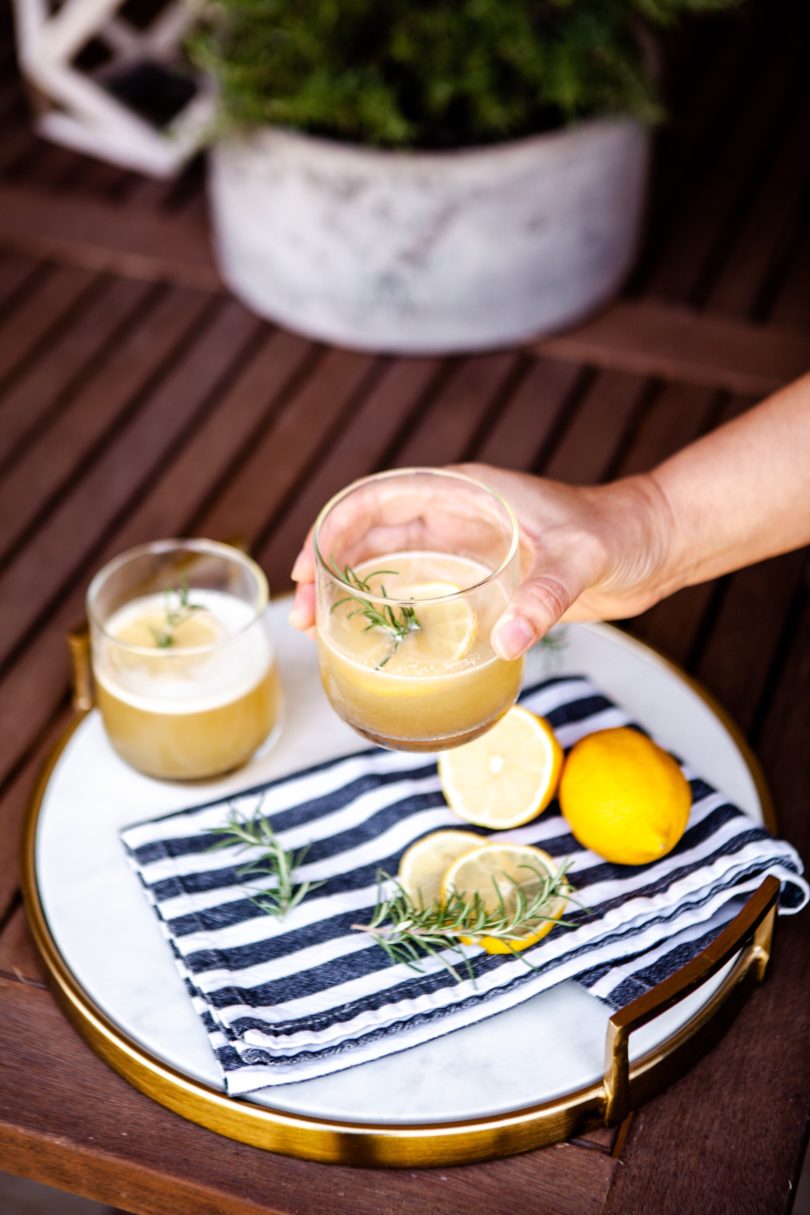 So I’ve been ignoring all the drink recipes out there that involve any type of…what’s the word I’m looking for…oh yes, EFFORT. AKA the drinks that tell you to make an infused simple syrup. *eye roll* But I wanted to make something with the rosemary that I’ve been growing on our patio this summer (#farmer) and all the drinks I found needed effort. So effort it is this week! And can I tell you something? Making a simple syrup might actually be the easiest thing I’ve ever done. It’s pouring two things in a pot, stirring, boiling and setting aside and BAM! You’ve got a simple syrup. It’s called simple for a reason, girl.