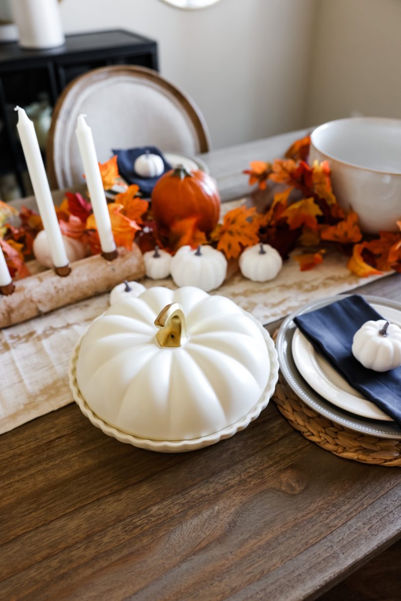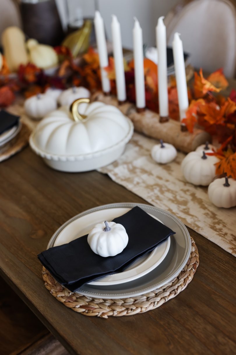 And of course no autumn table would be complete without pumpkins! I found these white pumpkins and took a chance on them. I thought if anything, Gemma will like them. But you know what? They’re great! A little chalky, just FYI. And I wish I would have bought a few more packs to really pump up the pumpkin volume, but next year I’ll be prepared. Find them here.