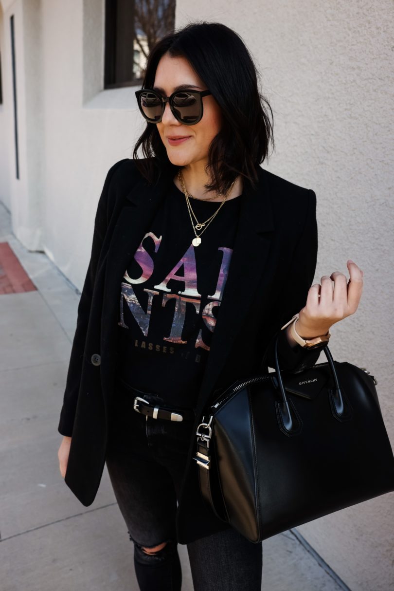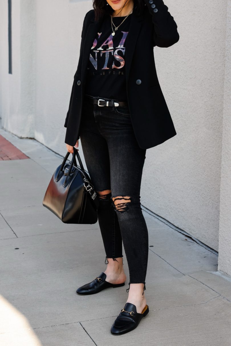 1. My most loved tees in my closet are my graphic tee ones. Peiod. Always and forever. Love this all black look, so chic!
