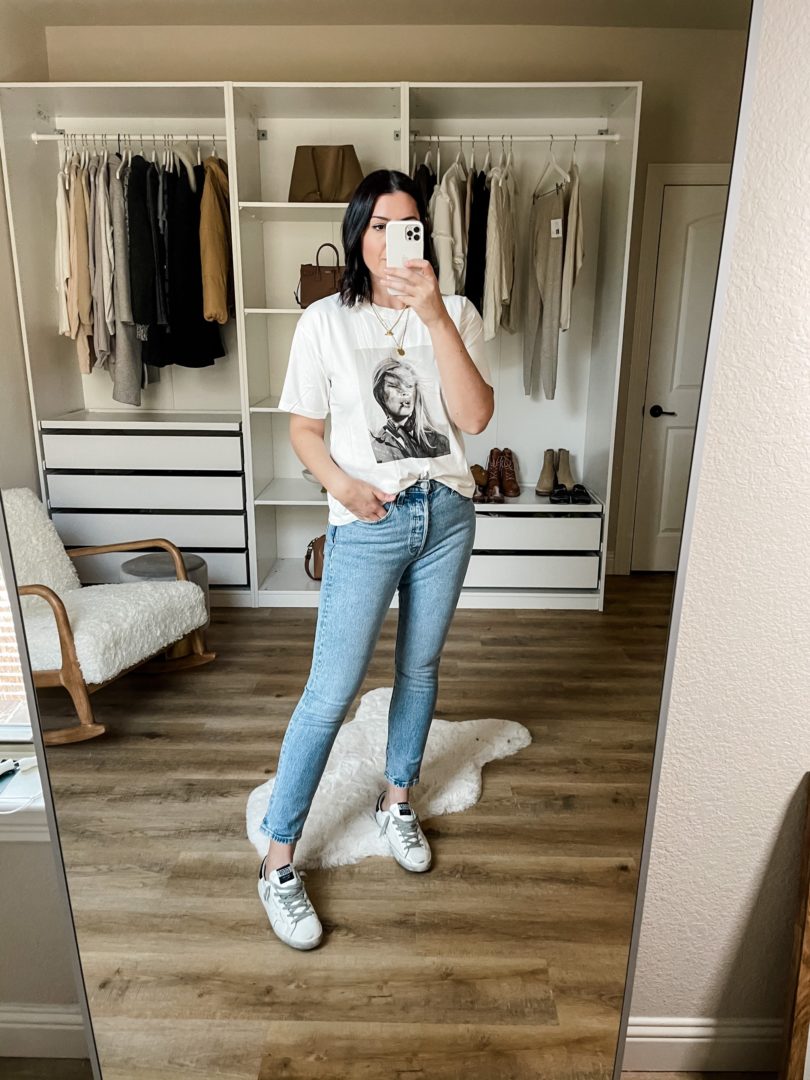 (RM Sweatshirt / Levi’s / Golden Goose Sneakers / Madewell necklaces)