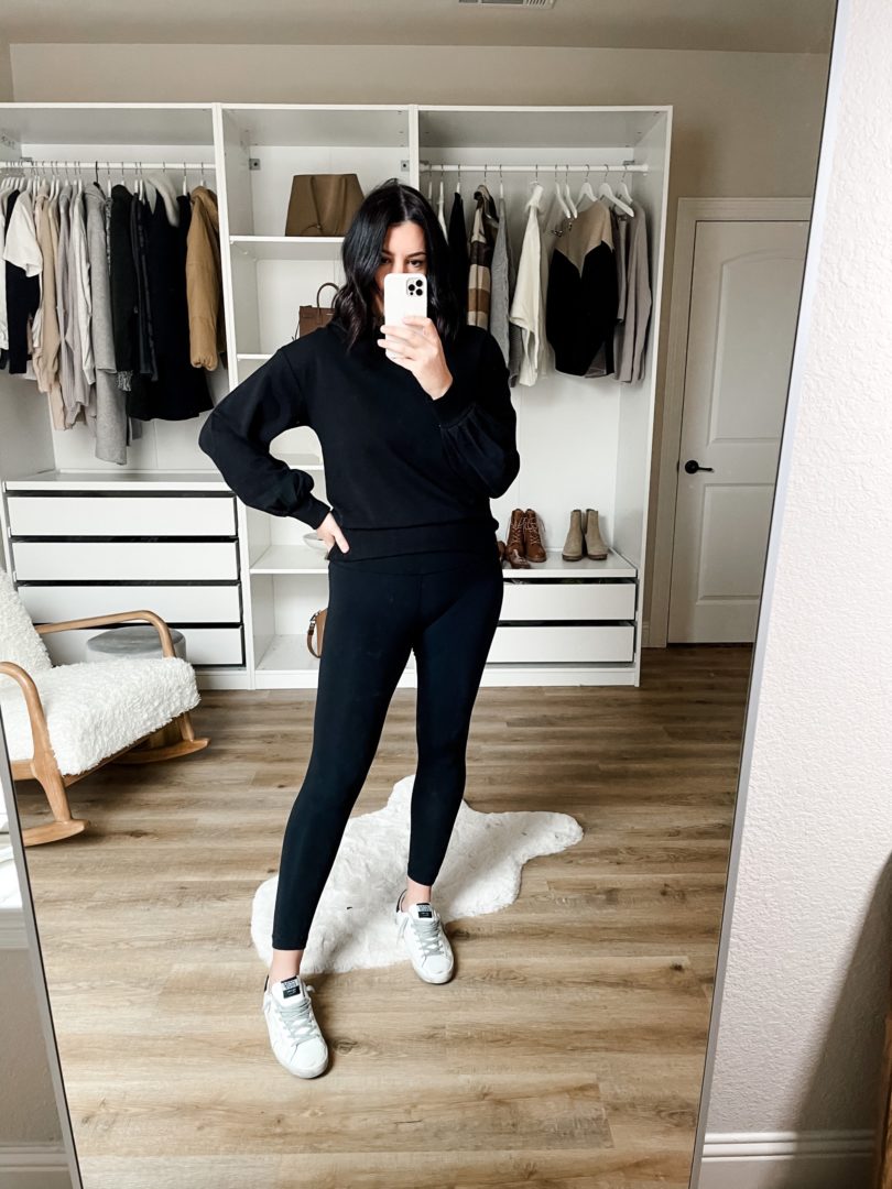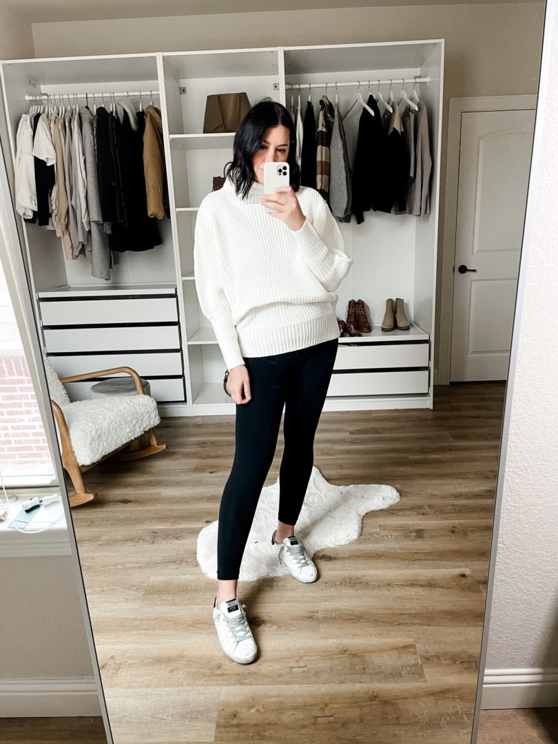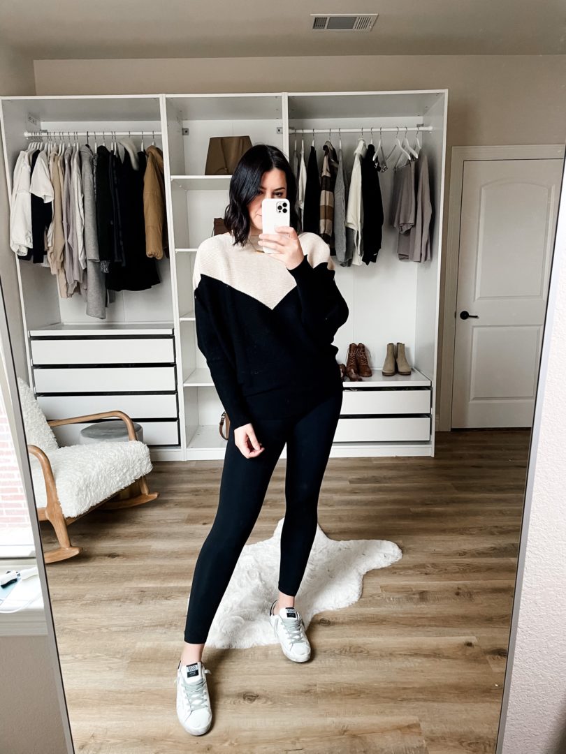 (Sweater / yogalicious leggings / golden goose sneakers)