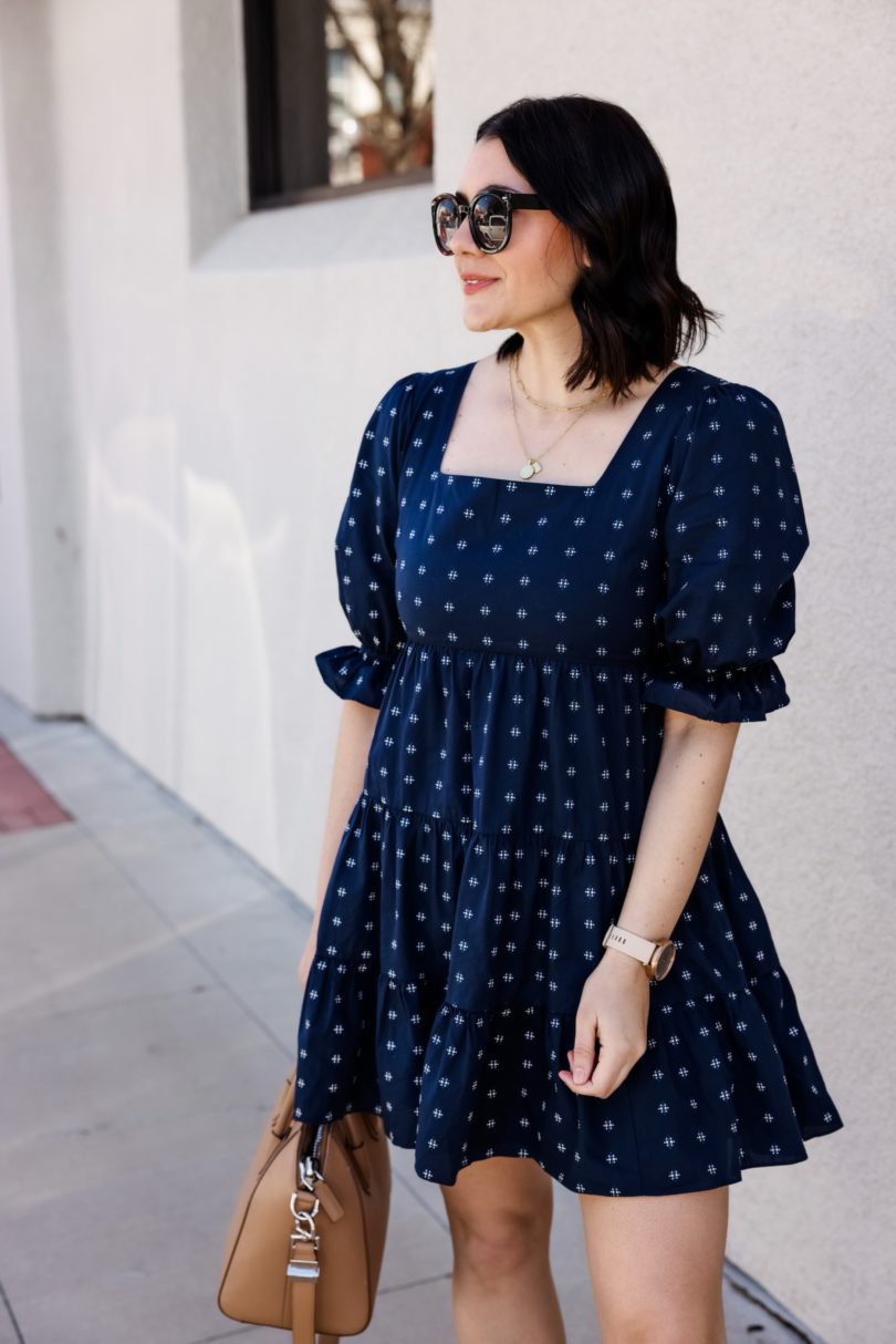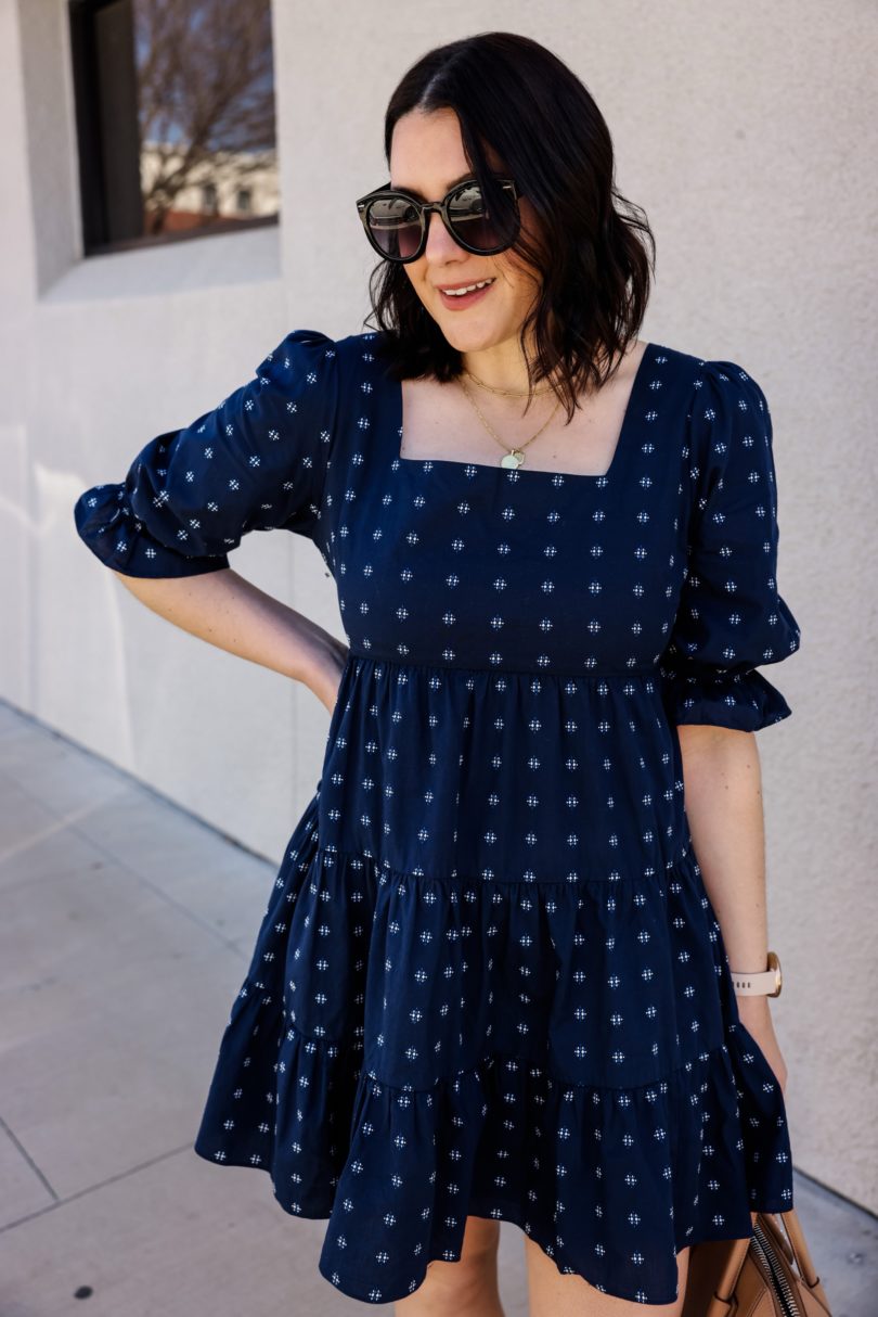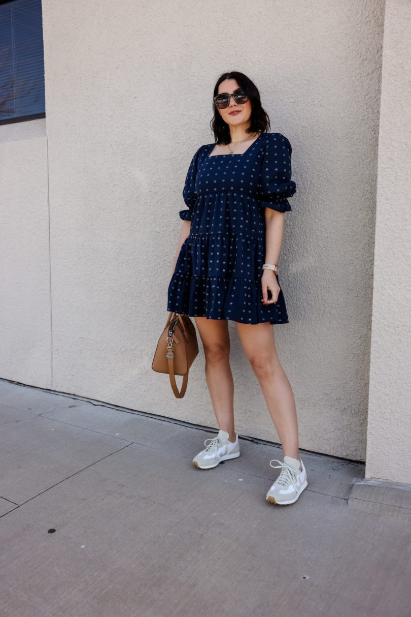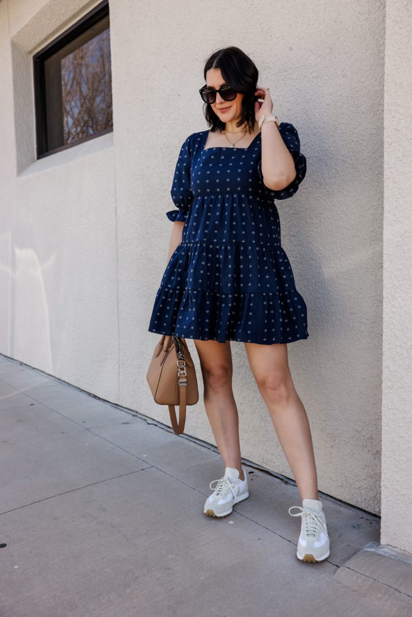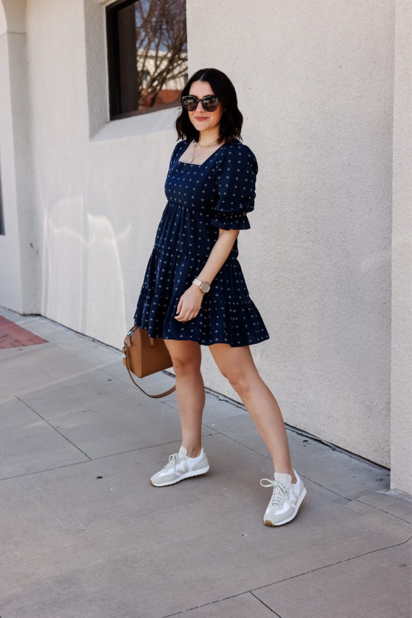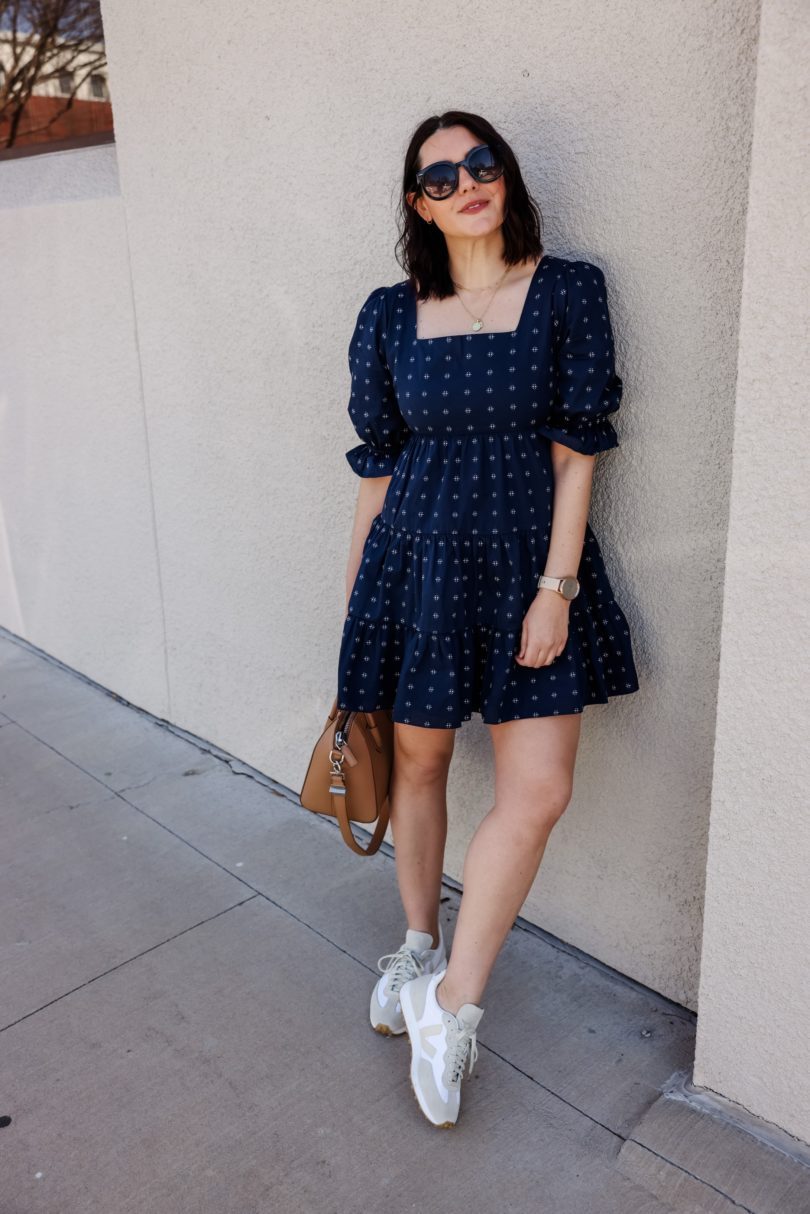 I’m always trying to trend forecast for the upcoming season, just so that I can plan for the blog and for my own wardrobe. I usually look to the past years trends to weed through what will stay and what I will pass on. But last spring was anything but ordinary, in fact we are coming up on a year that we first had lock downs and stay at home orders. Last spring was all about comfort — tie dye sets, leggings, sweatshirts. We abandoned denim and heels for a few months, and for me the heels still haven’t made a comeback. In fact, it’s made me look at what I truly like to wear and want to wear. So denim has made it’s way back in, I find comfort in denim and I like to keep them in rotation with my leggings. But somethings I definitely don’t want to throw out this year are dresses. I love spring dresses and I’m anticipating a big comeback this year. Maybe not full length sparklers, but easy going casual dresses that can be worn with flats, sandals or sneakers. (I mean of course heels, too but we still aren’t talking.)