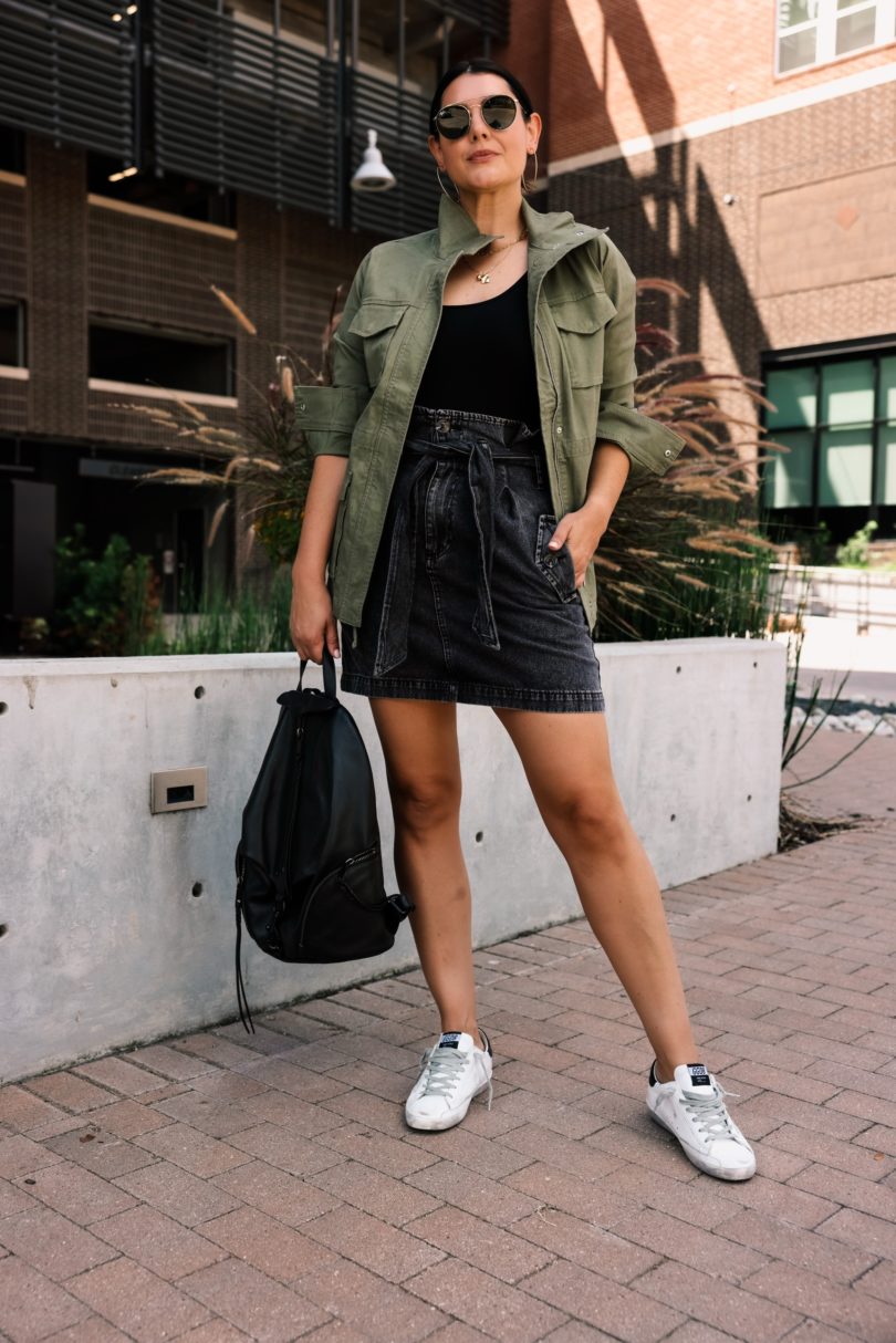 This denim skirt is SO cute! I think I just may need a black denim one for fall. Bought one at Madewell but it was a little too long for my liking. Like it short!