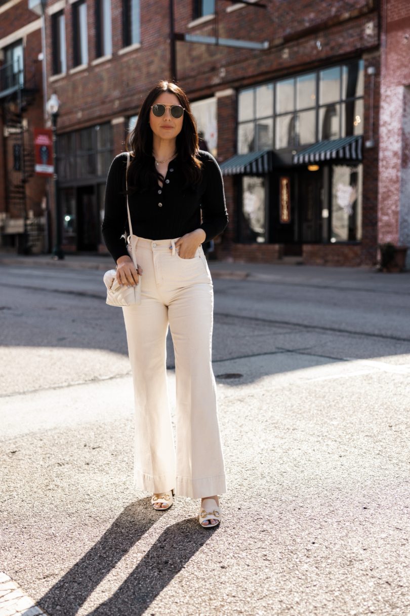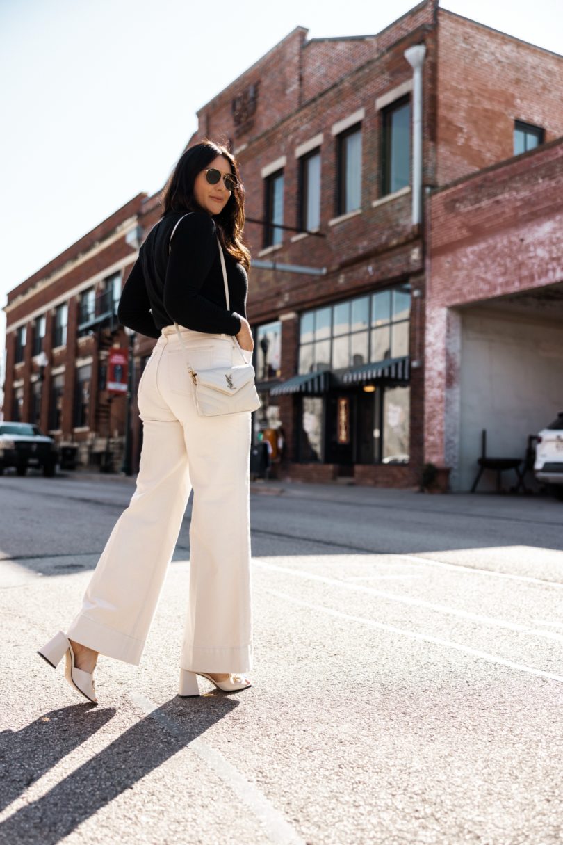 Remember these wide leg beauties? (They were in my capsule, too!) As it turns out I love them. I feel so good in them. Which is weird…because I’m not really into non-mom jeans. I’ve tried. I’ve tried to get behind all of the throwback trends but I really can’t. Wait, wait — this topic is a whole blog post in and of itself. *makes mental note I will surely forget about*