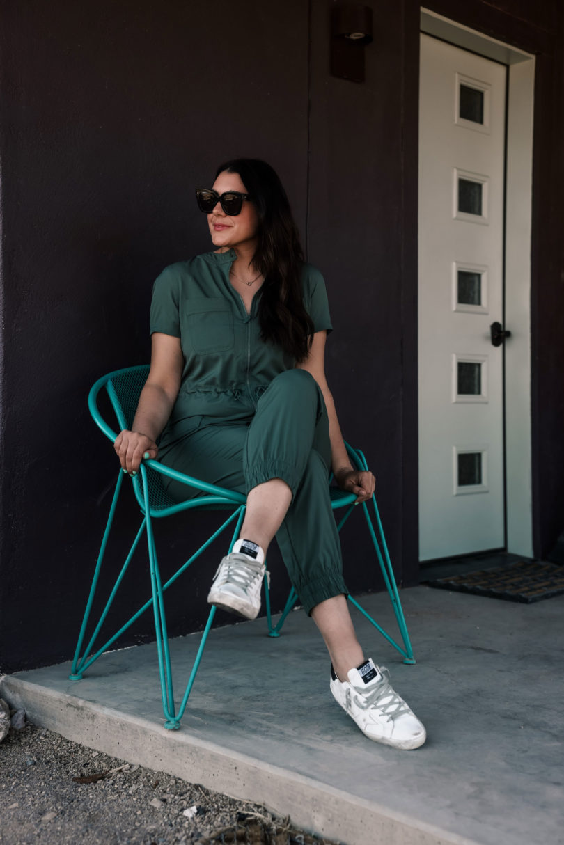 Old Navy Jumpsuit | Golden Goose Sneakers | Chimi Sunglasses