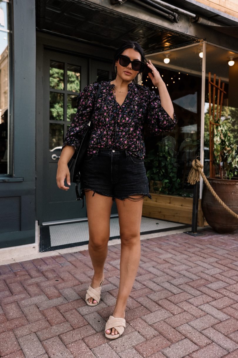 Whew, what an intro. All that to say — my top is on sale and BACK IN STOCK! It’s a cutie and I wasn’t sure if I liked the black or the red and actually ordered both and kept the black. However, you can’t go wrong with any of the three color ways and it looks to all be back in stock! It’s a cotton top, breathable enough to wear this summer but definitely a more fall vibe. Would be darling with faux leather leggings or dark jeans this fall!