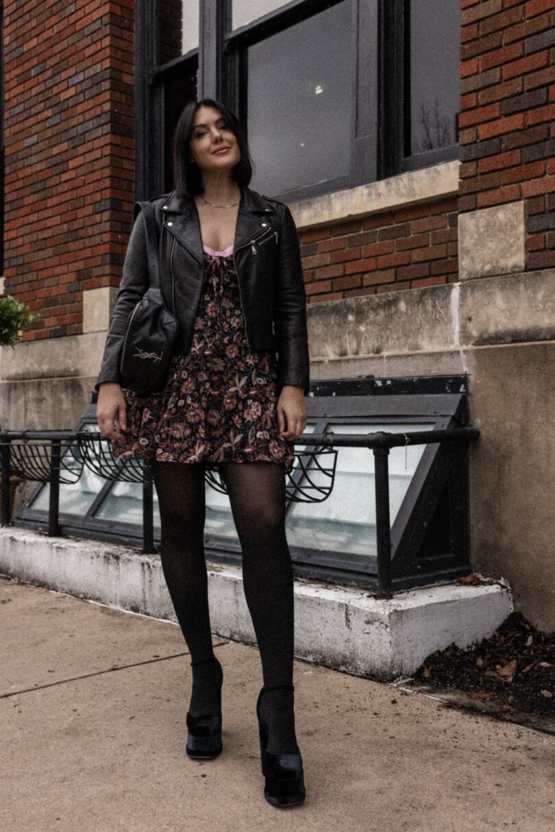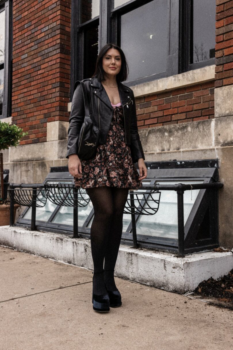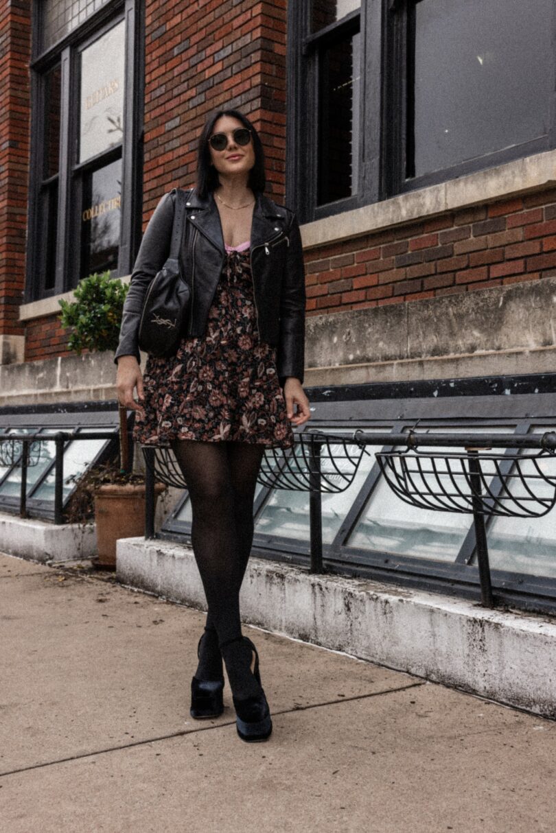 So my very pretty dress is v v low cut. Like almost too low cut. I’m not one to just put it all out there but in this dress I have no choice, really. I paired it with my hot pink Cuup bra (highly recommend btw) and just decided to make it look like it’s all on purpose. Plus with the tights and the jacket combo, they make it feel a bit more modest. If you don’t have big boobs, then it probably won’t be as low cut on you. You can also pair a camisole underneath as well for some extra coverage, if you love the dress, hate the cut. It’s currently 50% off at Madewell! Find it here.