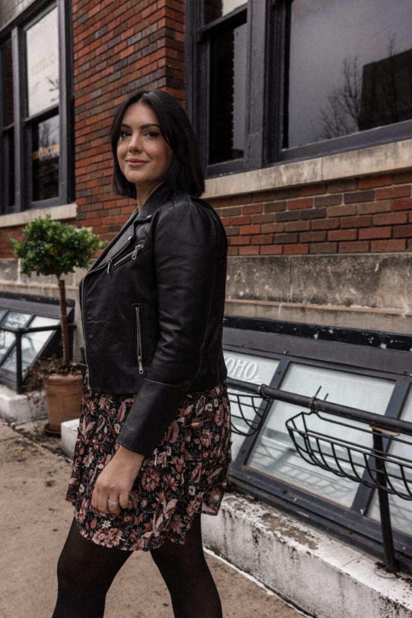 And this is what I picked up from my proverbial chair today. A pretty dress from Madewell and this leather jacket I rediscovered in my closet that I’ve low-key become obsessed with. I’ve had this jacket for closet to 6 years I believe. It’s from Rebecca Minkoff and bought it on major major sale after Christmas for something stupid like $150. I’ve been so proud of it that it’s just been sitting in my closet like a prize. It’s such a nice quality leather that I think I’ve just never trusted myself to wear it. I think it’s safe now for me to pull it out. I mean I’m someone’s mother for God’s sake. Surely I can be trusted with a nice leather jacket. (PS: I linked a similar faux leather option to the side!)