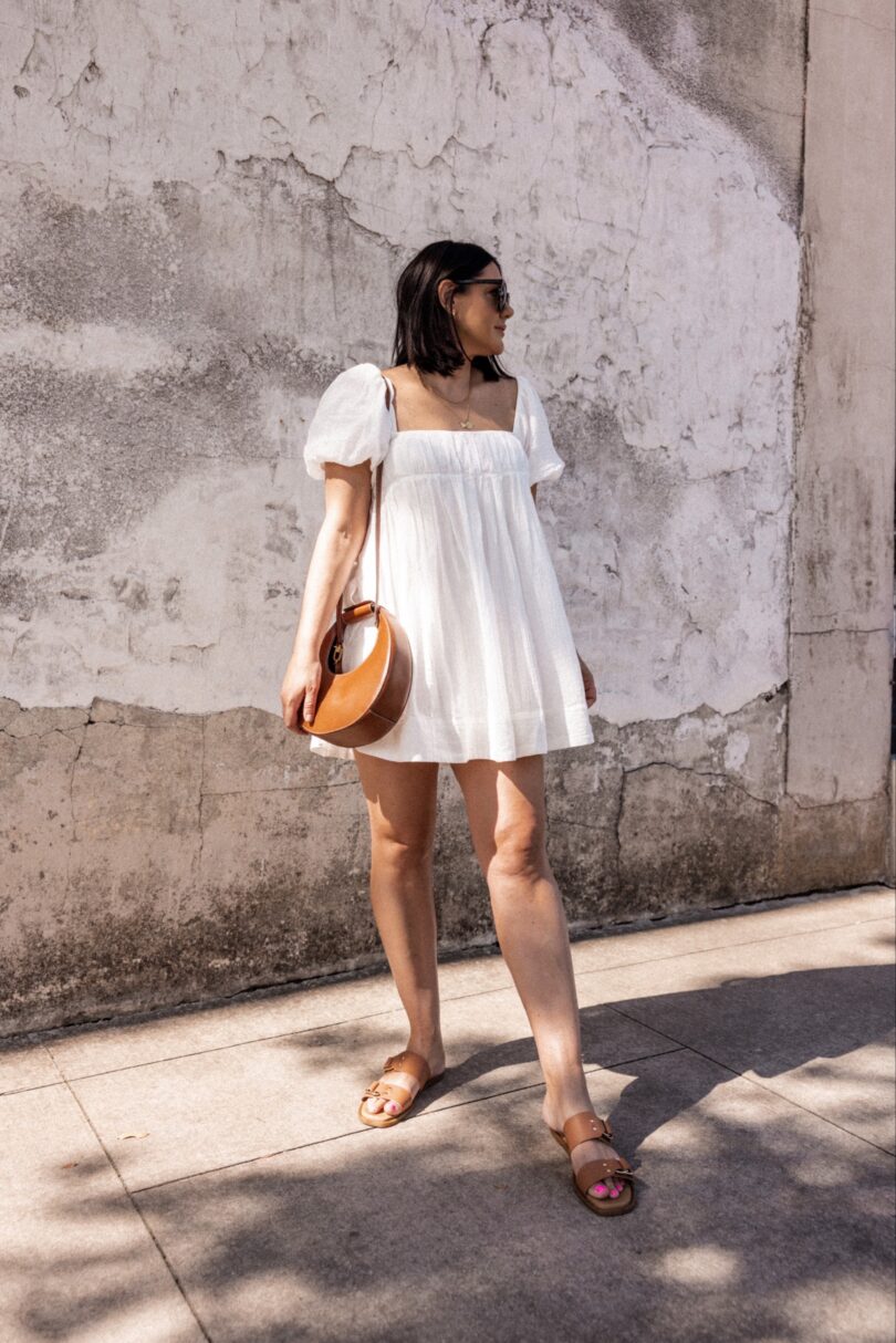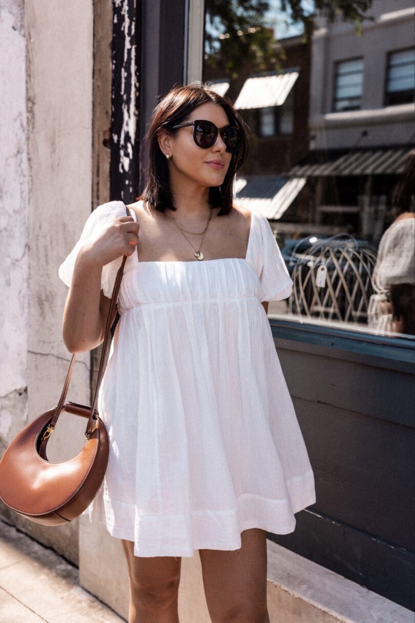 This dress was just almost a contender for the 4th of July as well but I decided to go with the blue romper just to keep with in coordination with my girl. But let me tell you this dress is perfect for hot summer days. It’s light and airy and as you can see, it loves a gust of wind. It really comes alive; it’s giving Marilyn, it’s giving care free, it’s giving I hope she is wearing shorts under there. (I am, don’t you worry.)