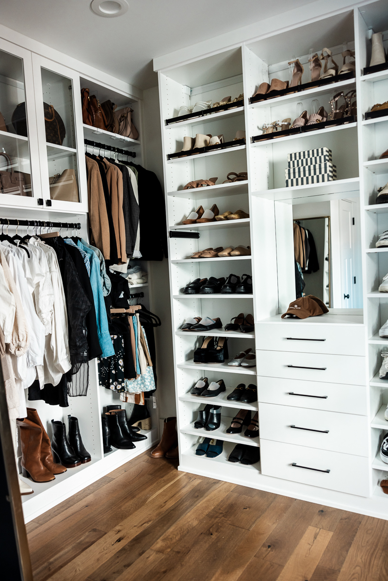 This room was my favorite and I think you can see why. I will say, I wish I would have hung up my clothes a bit more here, as I tended to keep it a bit messy. When I got it shiny and clean for the photos, I thought to myself why didn’t it always look like this!? Hindsight is 50/50 I suppose. I do wish I would have gotten a few more photos before we moved but alas, I did not. This closet was functional, had storage for days and just a dream come true. It was designed by California Closets and I would absolutely do a custom closet again. And for the record, I think any company would be fine to do it. We liked California Closets product and the company in general, but the process was a bit arduous. We chose CC after we had looked into a few other companies, but this design just won me over. I’m gonna miss this storage and space. I like to think I’ve left my mark on this closet. And hopefully a good mark, not like a stain although I make no promises when it comes to stains.