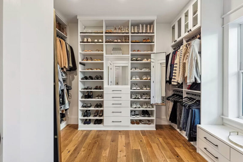 This was the only closet in the bathroom and we had one in primary bedroom but they were both pretty standard size, not really ‘walk in’ closets. We had California Closets redo all of them in 2022 and it was worth it. I would recommend closet design to anyone who is trying to maximize storage in a small space, it’s incredible what they can do. I promise this wasn’t Bryan’s only closet. You’ll understand why I am saying this when you see mine.