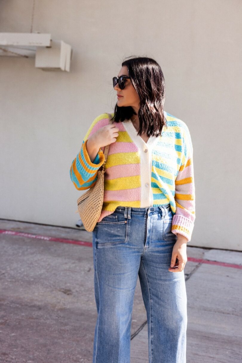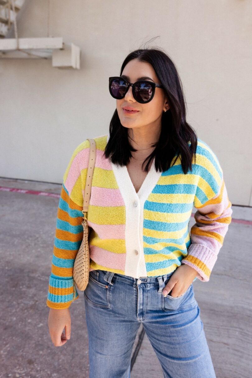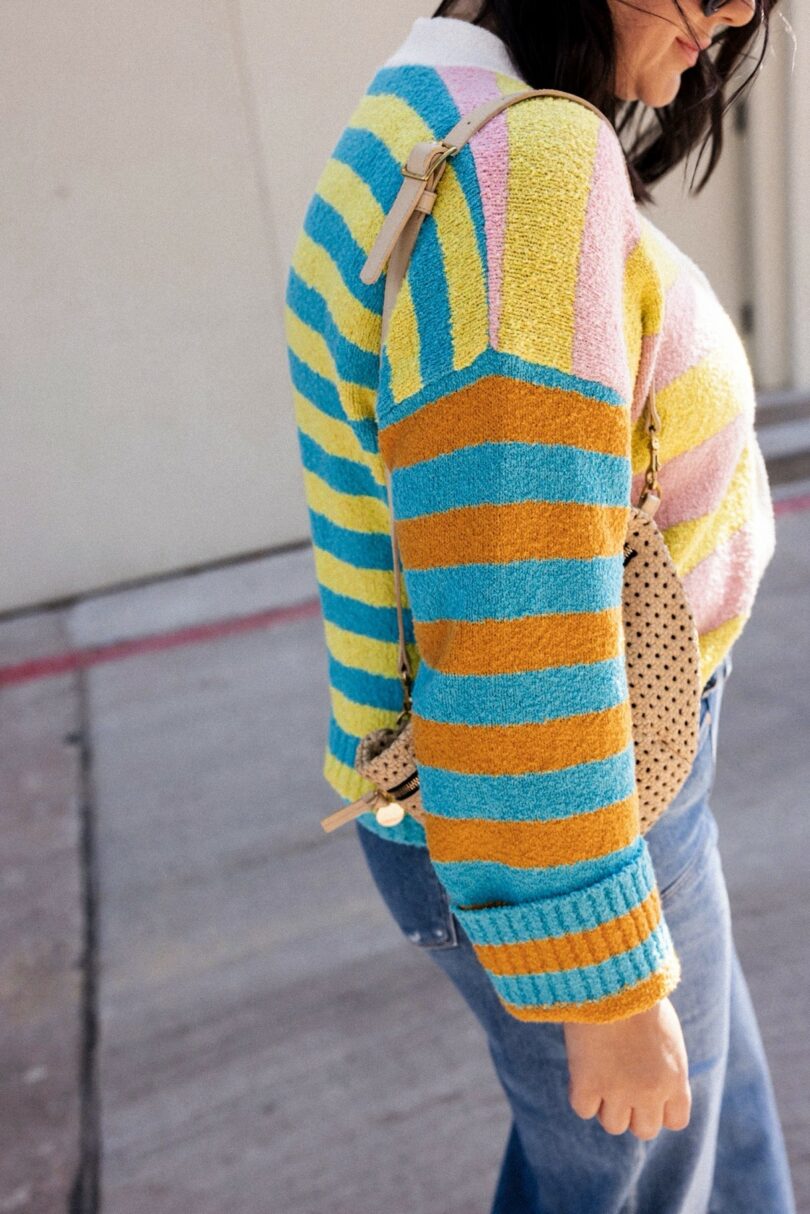 In celebration of color and spring, I thought I’d round up some other pretty and colorful sweaters. This one is from Rails via Nordstrom. It runs quite big, so size down one. I am in the large but the medium would agree with me better. As you can see here, I’ve had to cuff the sleeves because they’re so long, which is rare for me. Find this sweater from Nordstrom here.