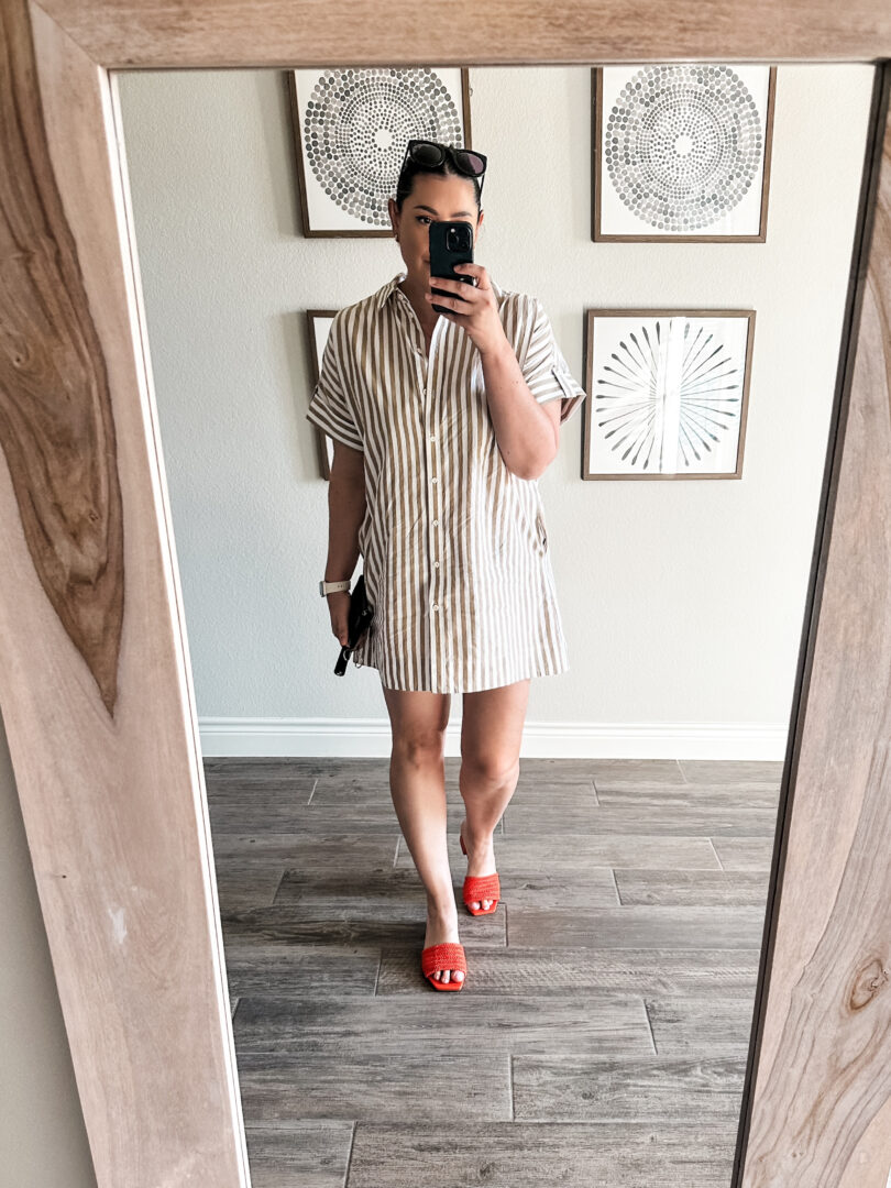 Absolutely living in this dress lately. I will also be using it a lot this summer + at the pool. I will say it’s quite lightweight, so nice for summer but may be a little light for right now for some of you. I am in the large but it runs quite loose / big! Size down if in between sizes.
