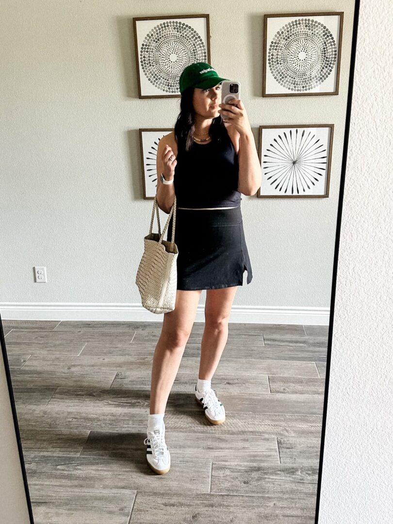Favorite Daughter Hat | Vuori Tank | Target Skort | Adidas Gazelle Sneakers | Hanes Socks