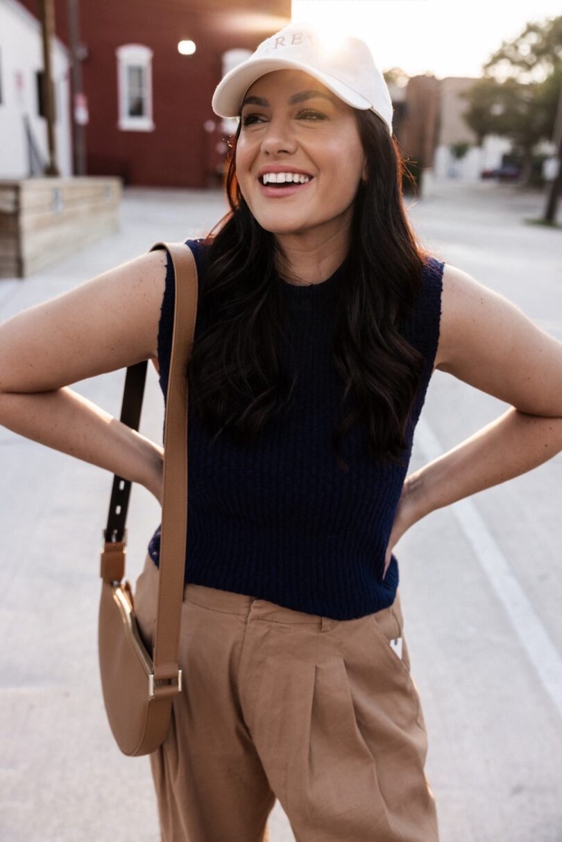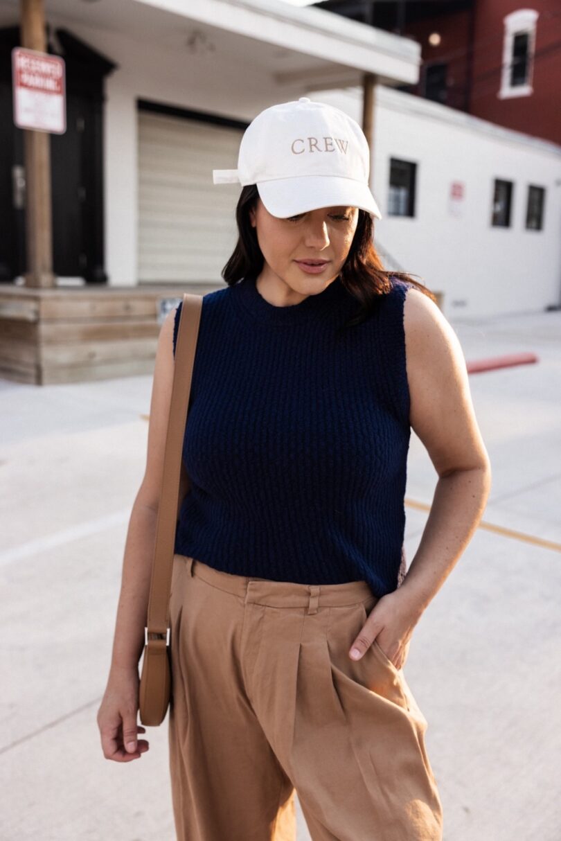 I love this little sweater vest from Madewell. It’s so soft and stretchy and it’s not too heavy. Yes it’s more sweater like but it isn’t too hot to wear right now! I am in the large and like this size. It’s more fitted, so the large is perfect. Find it on Madewell here OR at Nordstrom with a bit more stock in sizes.
