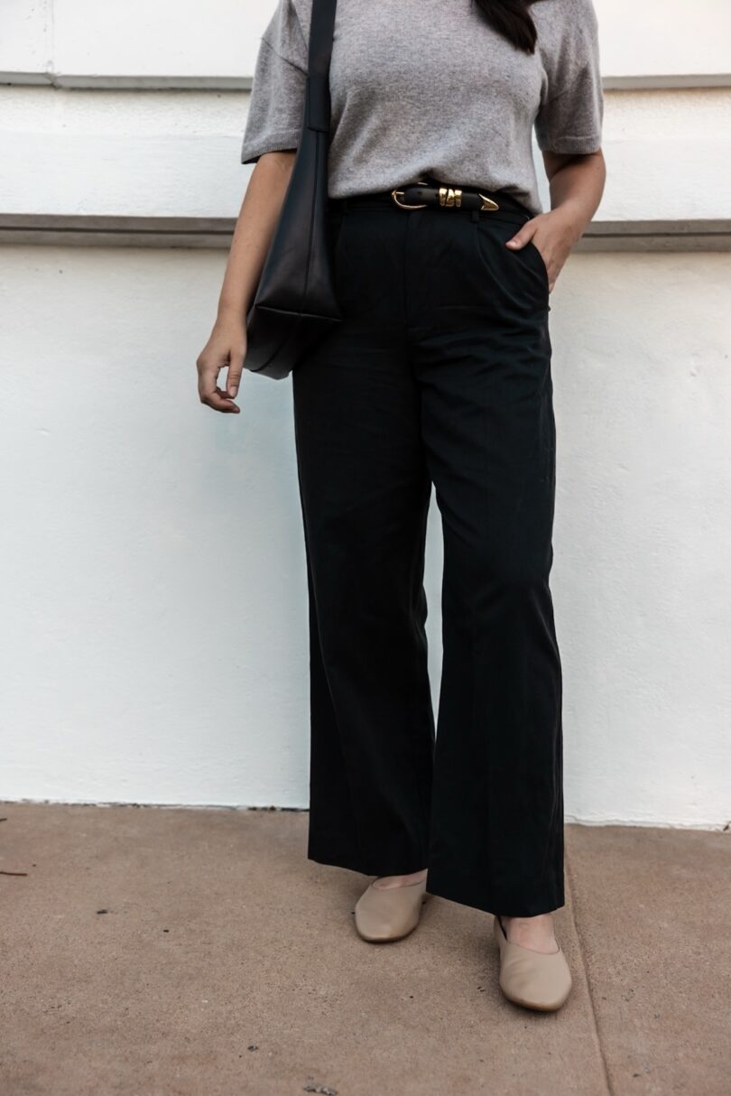 Secondly, I will say this– and I mean this for all trousers, not just these: they are not attractive from the side, on me at least. In my opinion there is a reason I can’t see my backside; it’s none of my business. From the side, there is no shape as they kind of fall the same in the front and the back. I didn’t get a photo of this but basically they’re a bit shapeless in the back. For me? I don’t care. But I thought it was worth a mention. I’ve made peace with the fact that style right now is not the most flattering on my body type and that’s okay. I walk a fine line between wearing what I like and what’s in style while finding a good middle ground of what I feel comfortable in and what looks best on my body type.