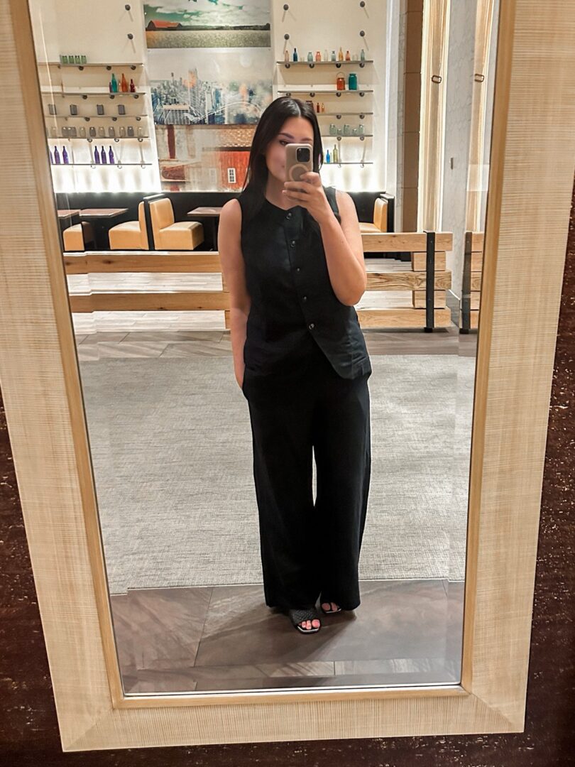 love this set from Evereve. I wish these pants were back in stock but I’ve linked similar here! I’m in the large of the vest, TTS. I’m in the medium of the pants.