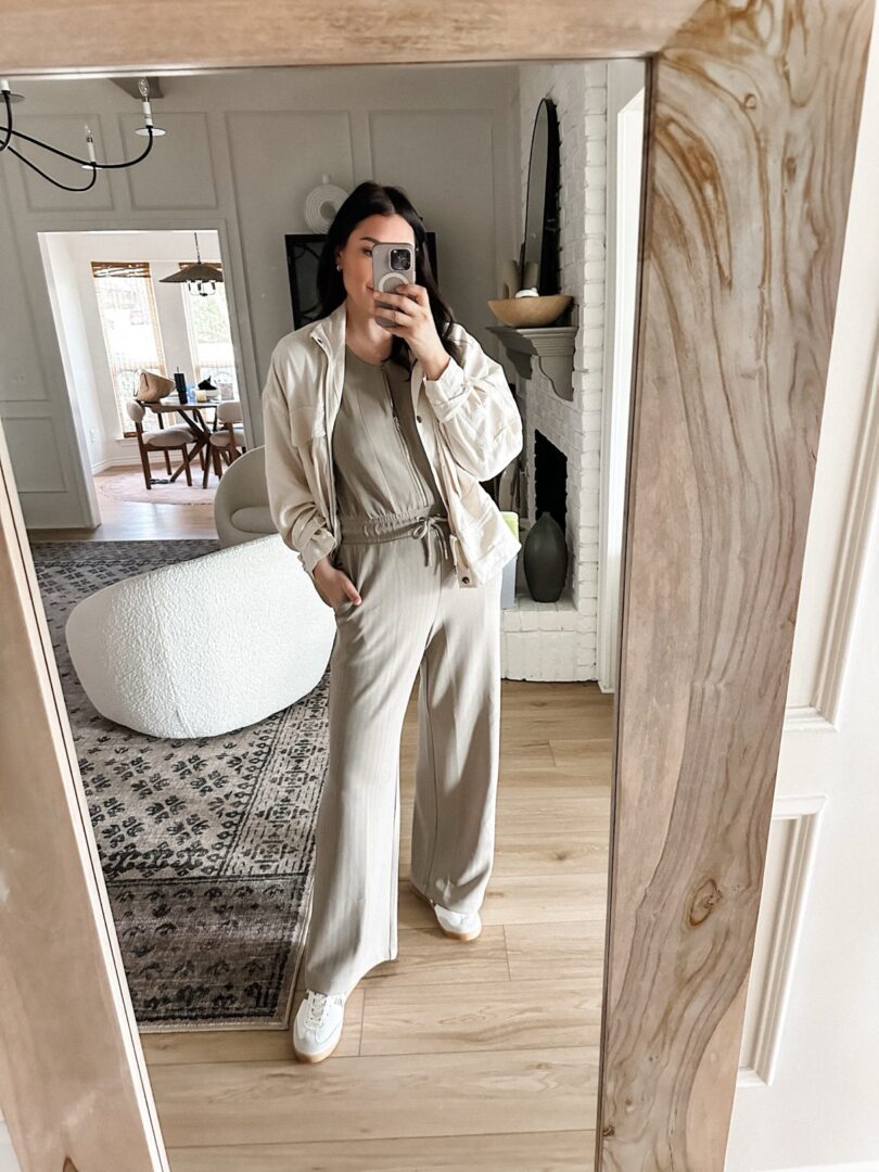I love this jumpsuit and that’s a high compliment because I’ve written off jumpsuits and rompers years ago. But here I am loving this one. It’s so soft, it’s structured and it doesn’t show lumps and bumps. What more could a girl ask for? Oh and for us tall girls it’s long enough! I sized up to a large in this one because I know better when it comes to length and a jumpsuit.