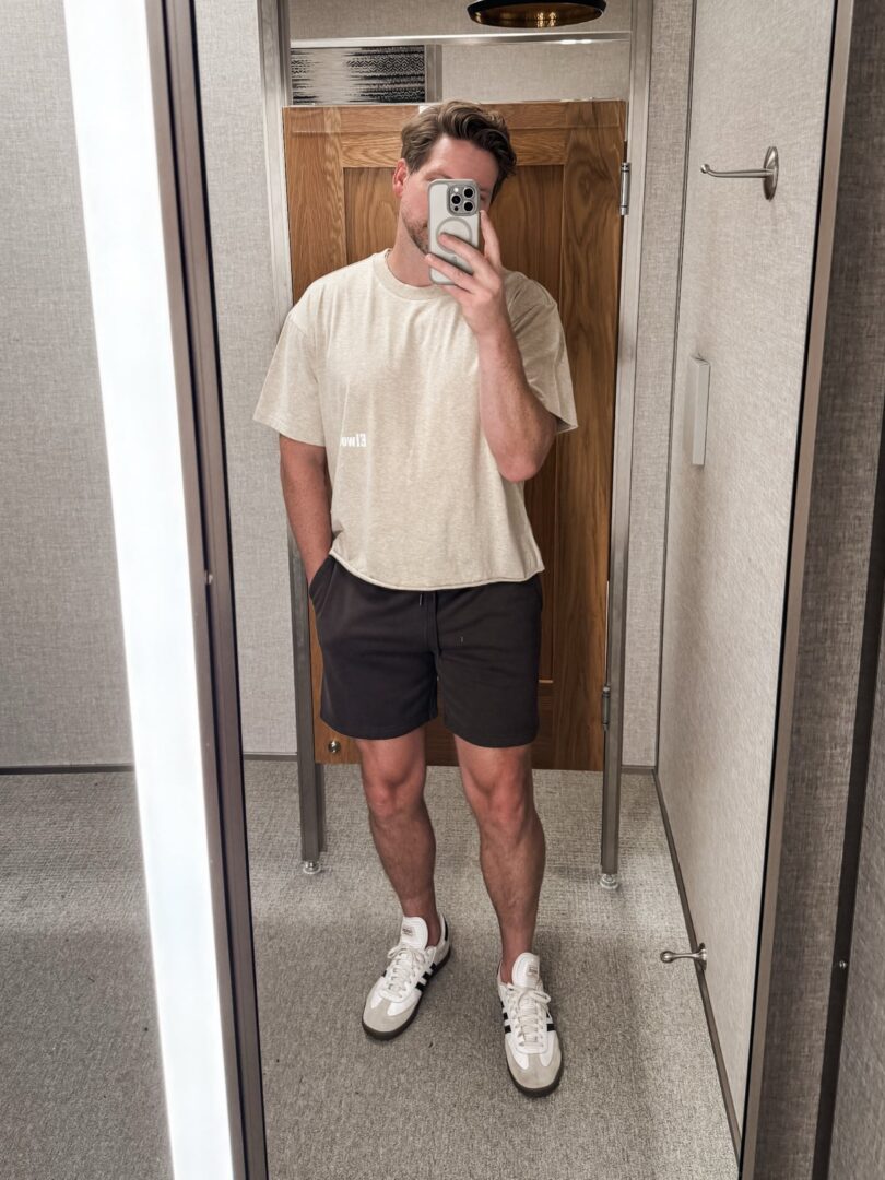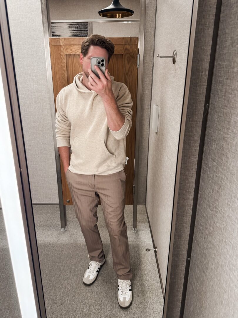 The Nordstrom Sale has about one more week and some change left (ends August 3!) so I wanted to share some pieces that Bryan tried on and some he picked up! We looked at our local store so it wasn’t a ton of inventory / options but many of the brands he likes to shop were around. He ended up finding some more casual pieces and gym essentials, not so much things for work, but that’s ok! He couldn’t find any denim he loved so we passed on that as well as outerwear, too.