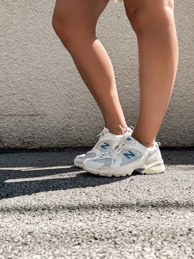 But then I saw the two colors — baby pink and blue — and I was less than thrilled. But then I saw them in person, thrilled again! It’s more of a denim blue than a baby blue and I will take it. The shoe itself is neutral enough and the blue works well with denim. If you’ve been wanting to try the chunky dad sneaker trend (and even if you haven’t!) this is such an easy sneaker to wear. The ankle hits in the right place, the tongue isn’t too stiff and it’s the right break on your leg so it’s very flattering. Sneakers can be tricky — sometimes they are too chunky or the tongue comes up too high and it makes your leg look bulky, but these get it. I could sing the praises for the New Balance 530 all day. OH and they’re comfortable, too! As long as you get them in your size. (The 10 fits me perfectly.)