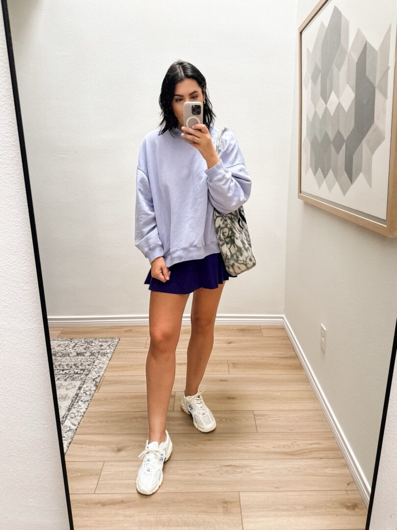 FP Movement Sweatshirt | similar Athleta shorts | New Balance Shorts | Amazon Socks | Alo Bag (eBay)