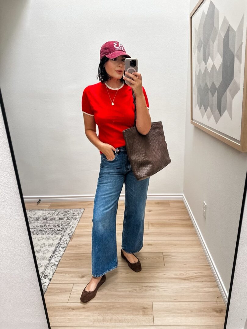 Clare V. Tee | CoH Low Rise Jeans | Amazon Mesh Flats | Allsaints Half Moon Crossbody