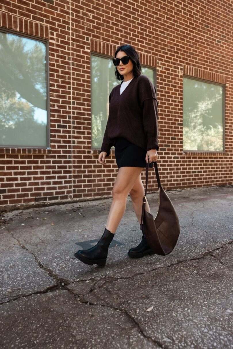This is the softest sweater from Nordstrom and it’s under $50. It’s perfectly oversized too. This is the medium and it fits quite big, so keep that in mind. Plus it comes in so many colors! I like this deep chocolate brown but you can’t go wrong with any hue in this sweater.