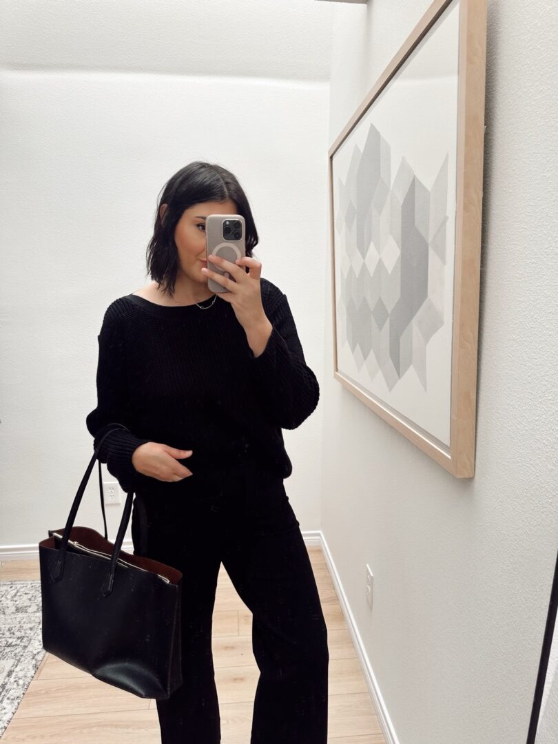 I’m in the medium and it runs oversized! This is the distressed leather but I think I’d go brown or black in this one if I had to do it again! Find it here for $50 off.