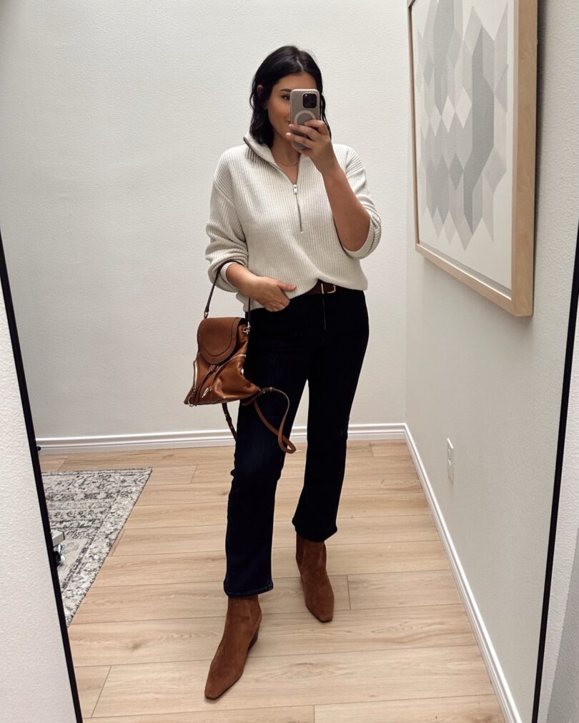 QUINCE PULLOVER | QUINCE DEMI BOOT | Similar J.CREW BOOTS | SEE BY CHLOE BACKPACK (OLD)