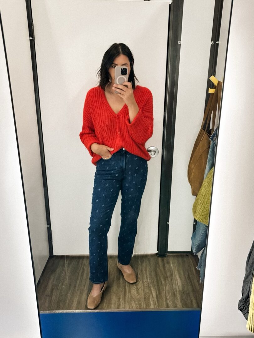 • Side note: get in on the red sweater trend! This one is under $30 and will be perfect for layering.