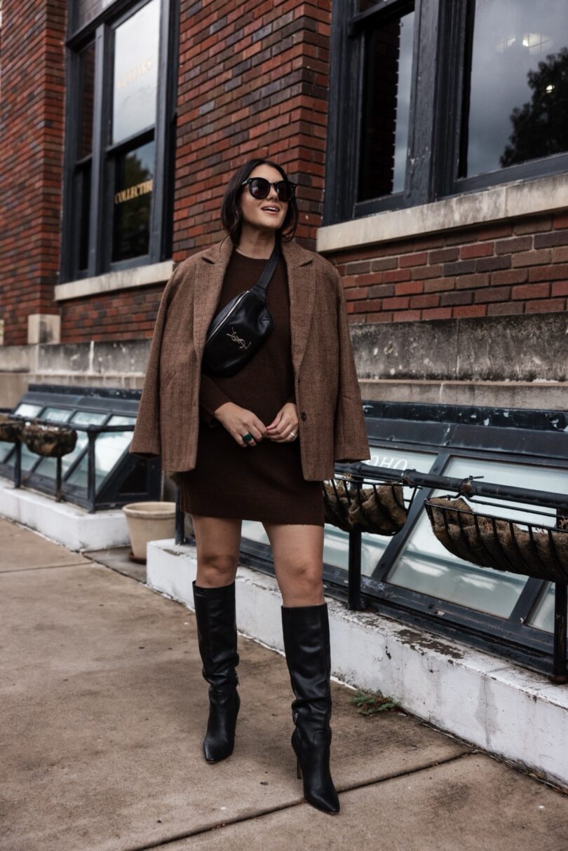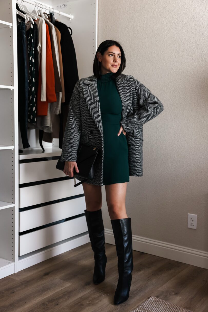Oversized Tweed Peacoat + Silk Dress + OTK Boots